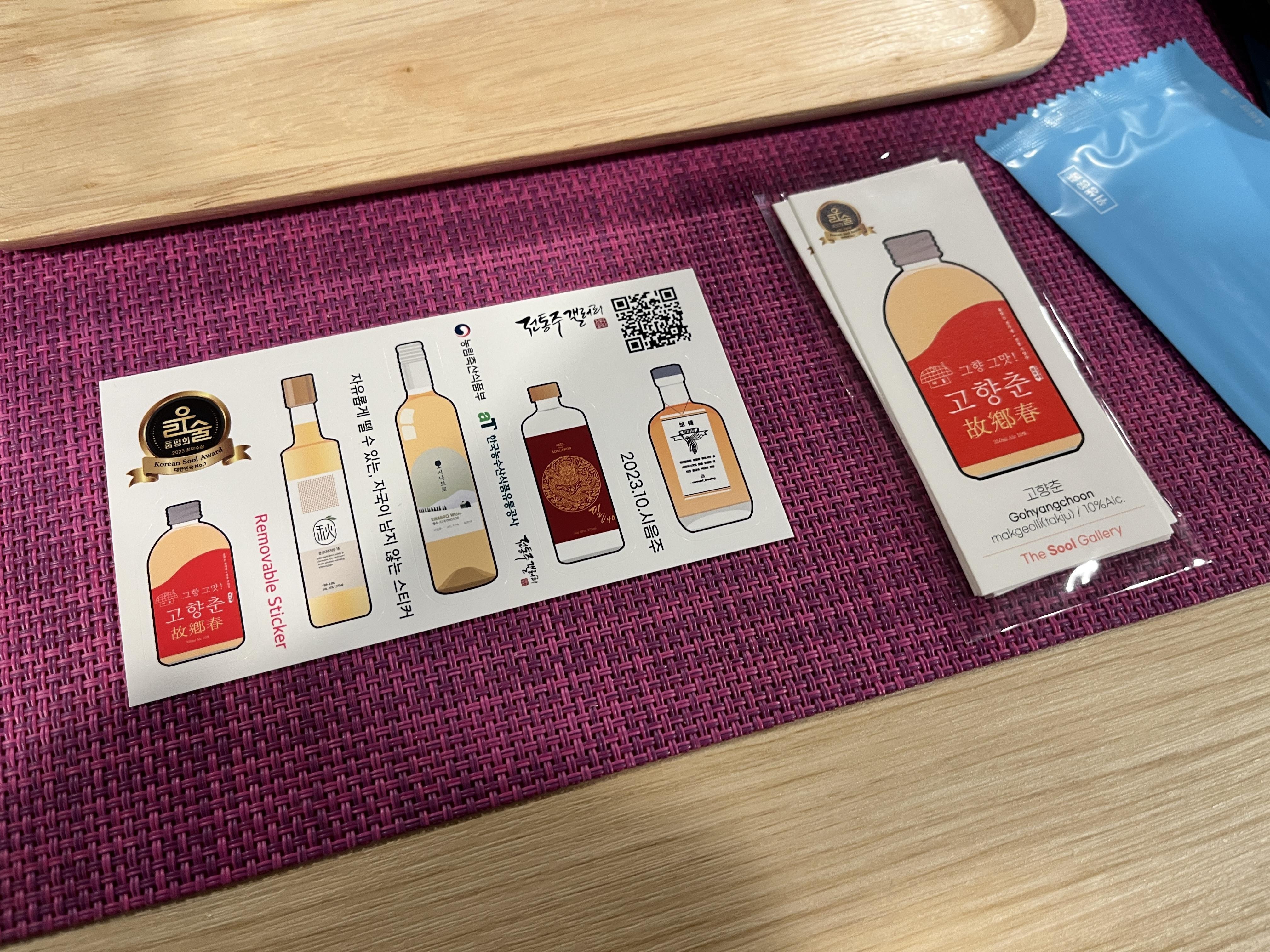 짐을 두고 자리에 가니 술 스티커와 카드가 놓여져 있습니다