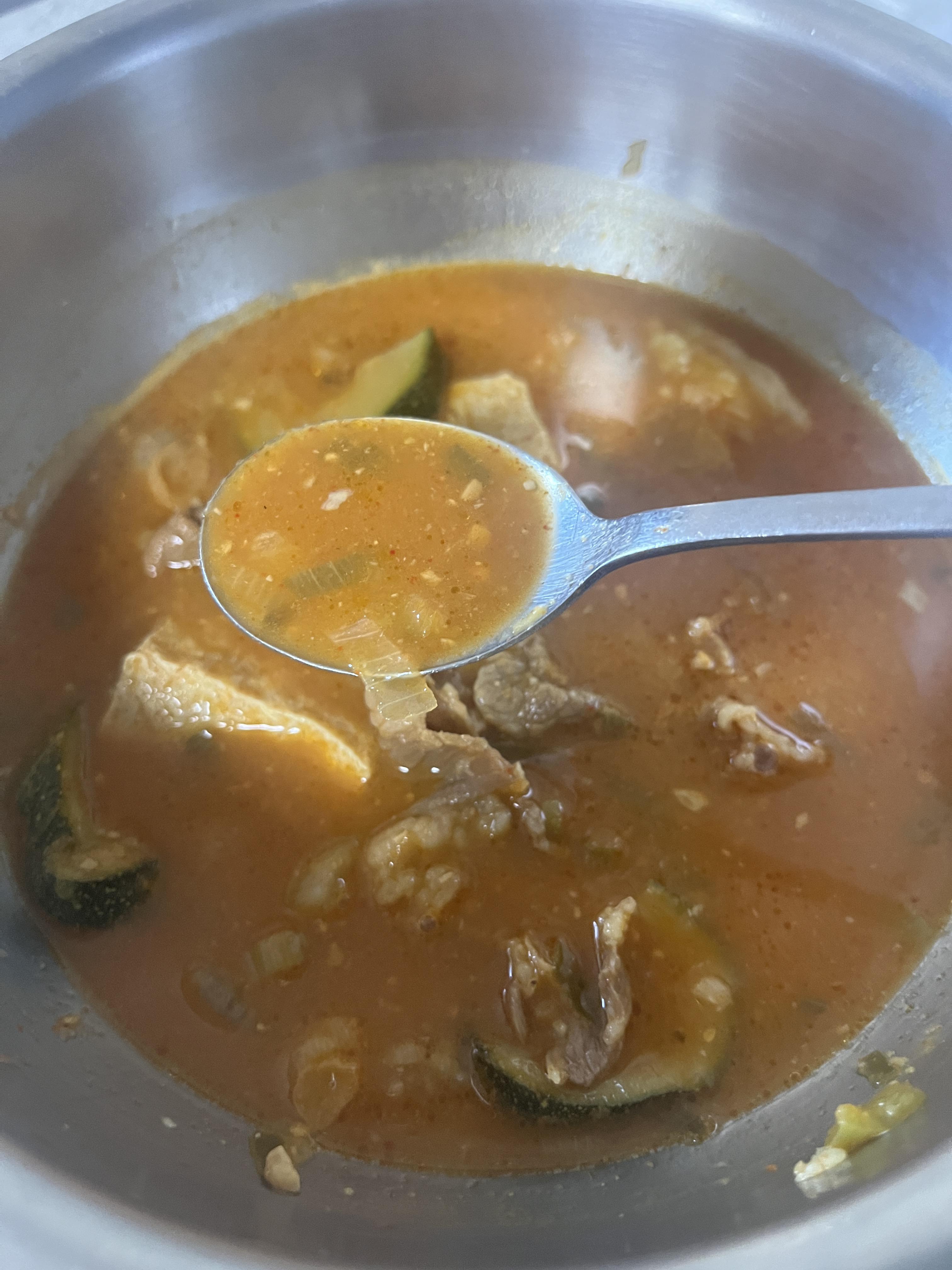 암튼 국물이 진~~하고 약간 육개장 스타일의 된장찌개라 보시면 됩니다