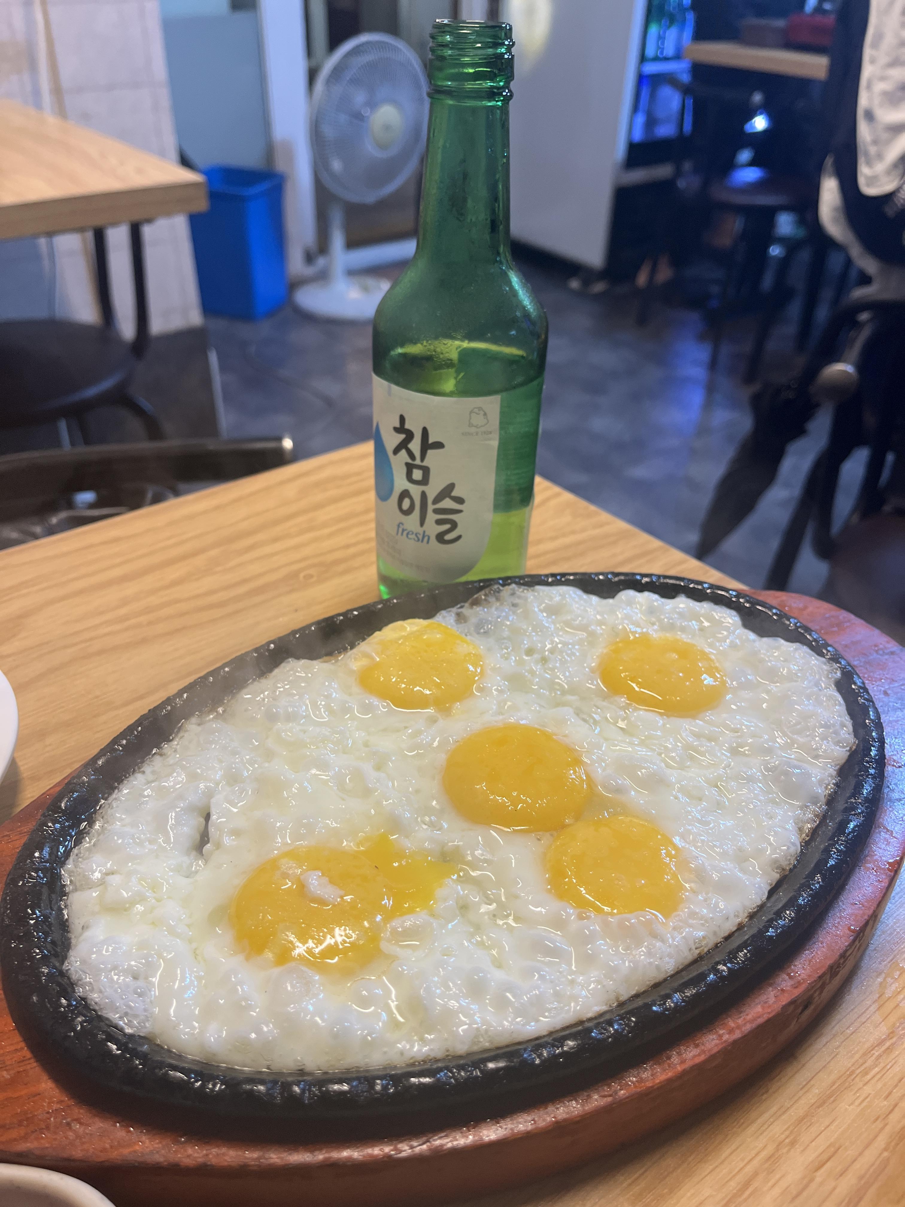 다섯개의 계란이 지글지글... 후라이가 별미입니다 이집은