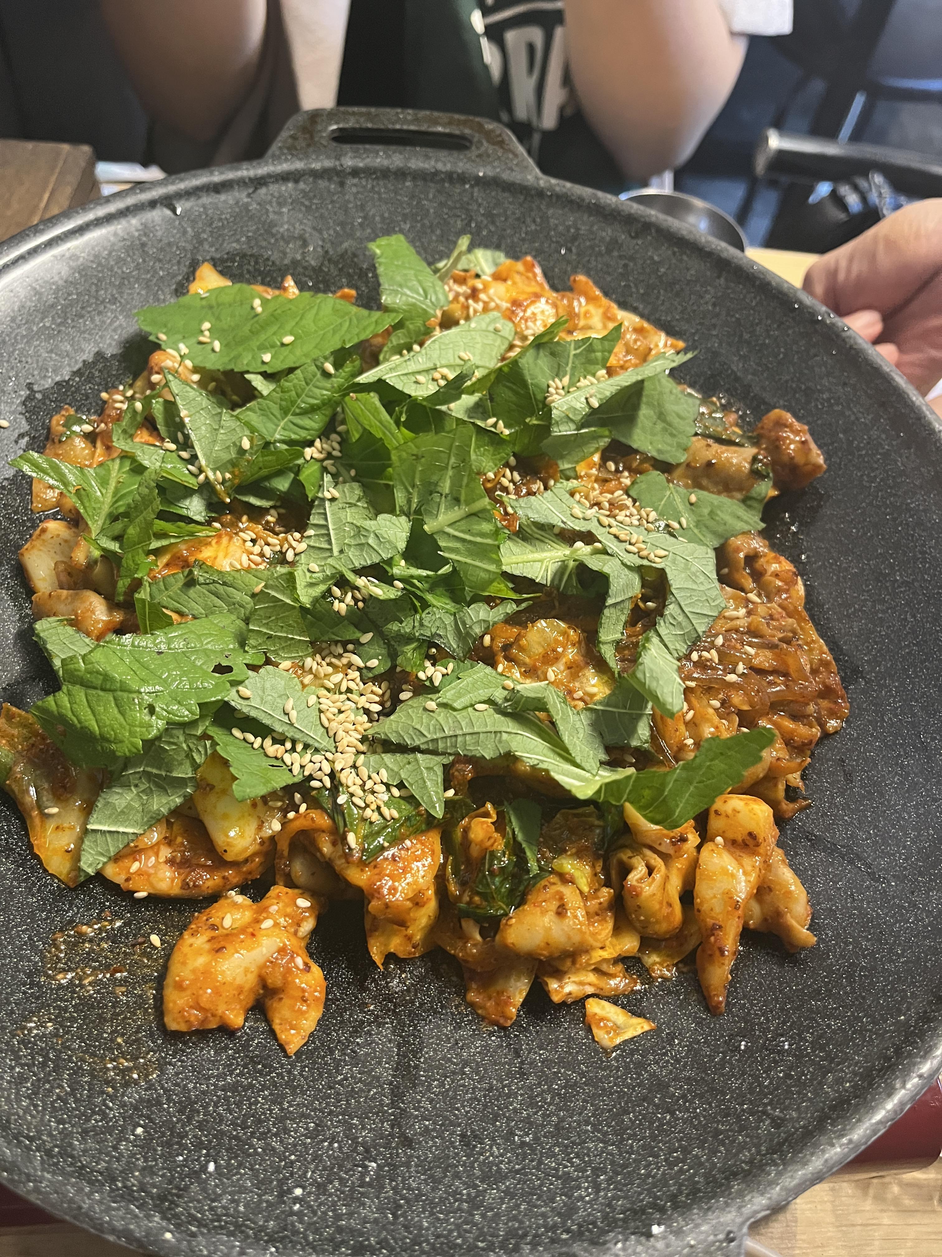 푸짐하고 이미 한 번 조리되어 나와 조금 익히다가 깻잎 숨이 죽으면 바로 먹을 수 있습니다