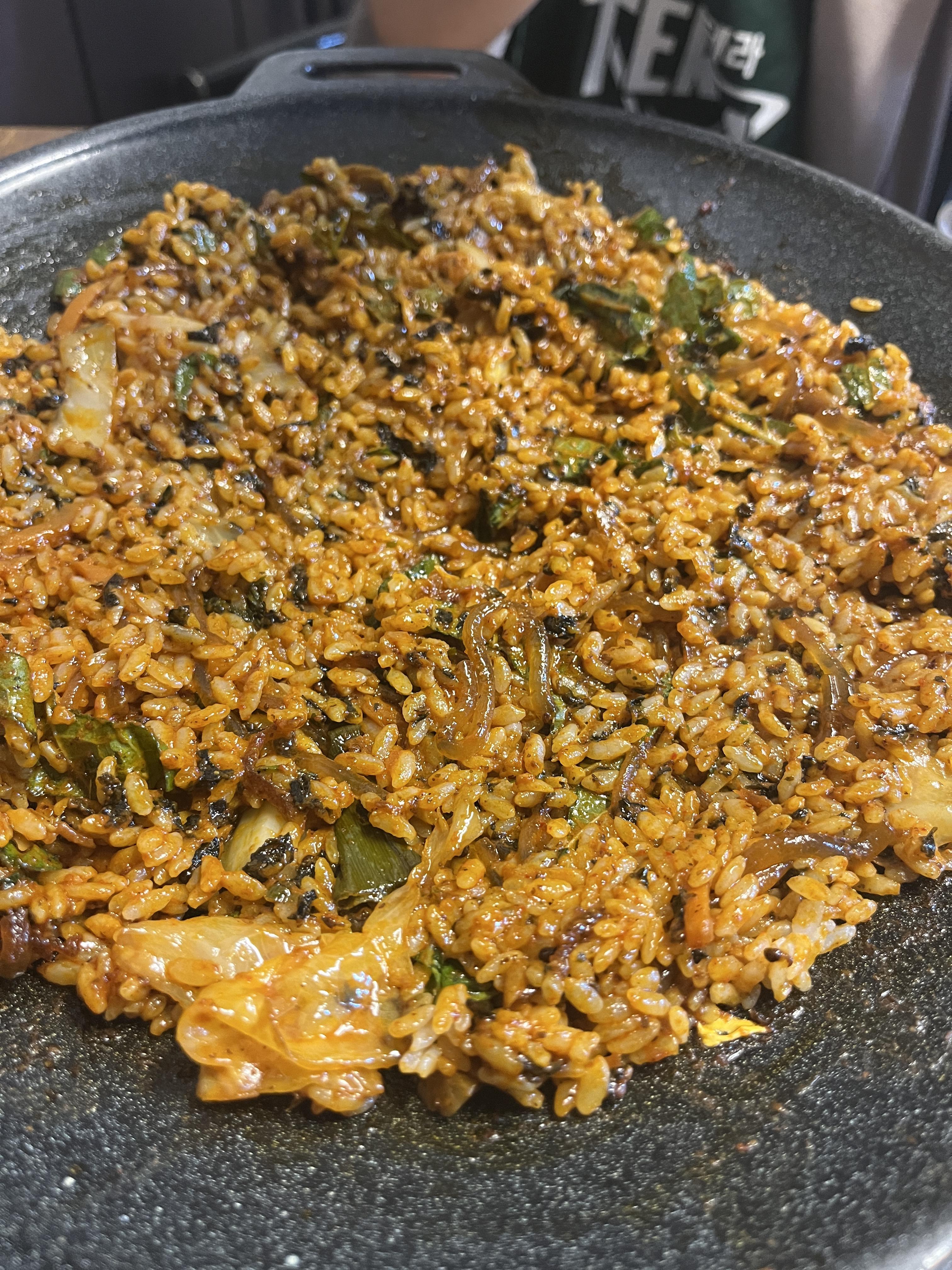 곱창을 다 먹고 밥 한 공기를 볶았습니다