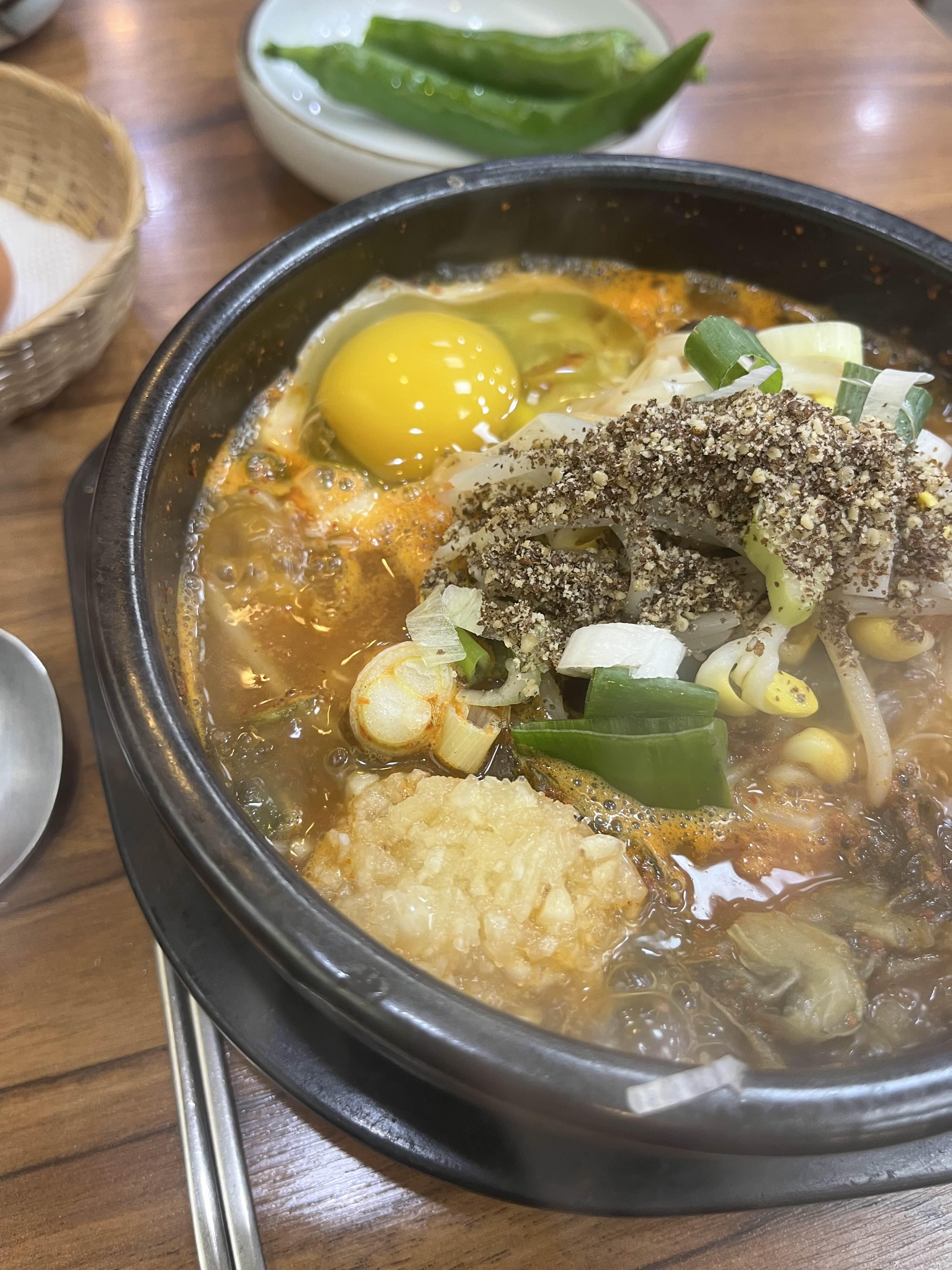 콩나물도 들어있고 익을듯 말듯 부드러운 계란도 들어있고