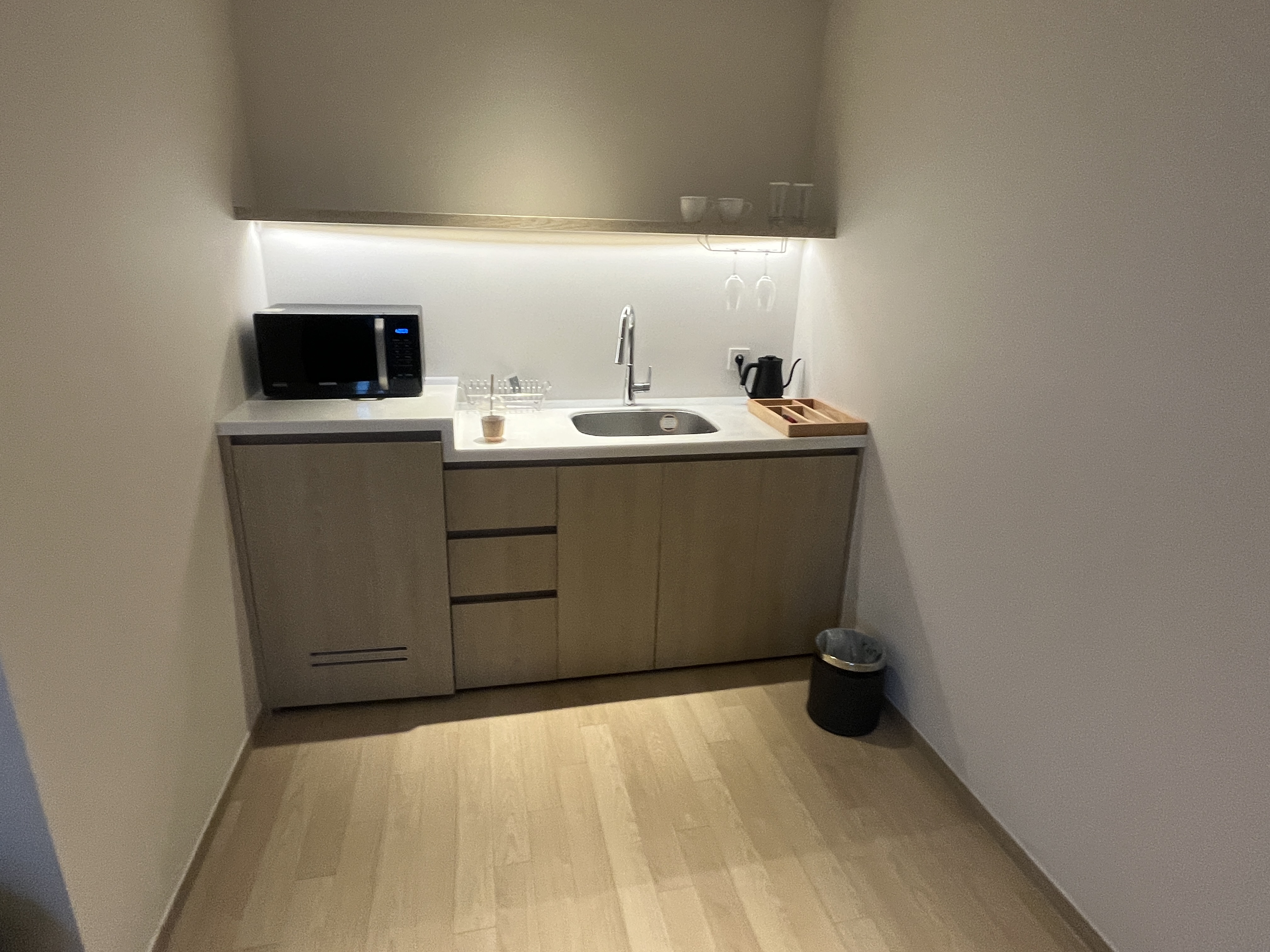 음식을 데울 수 있는 전자레인지와 작지만 귀여운 미니냉장고도 있습니다