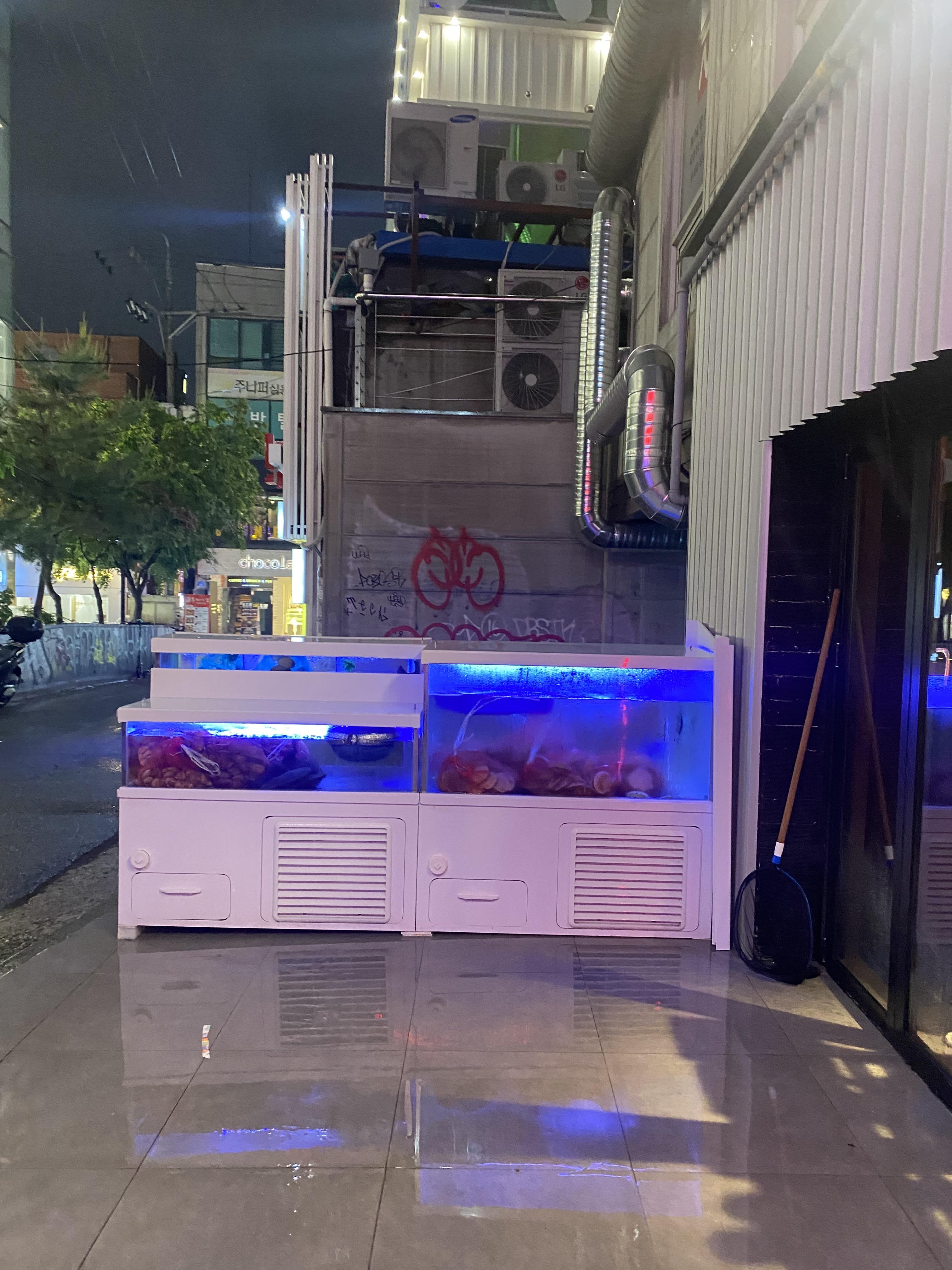 외관 개 힙합니다. 골목 좀 안쪽에 있는데 외관만 보면 힙한 술집같아요 근데 앞에 수족관이 있음