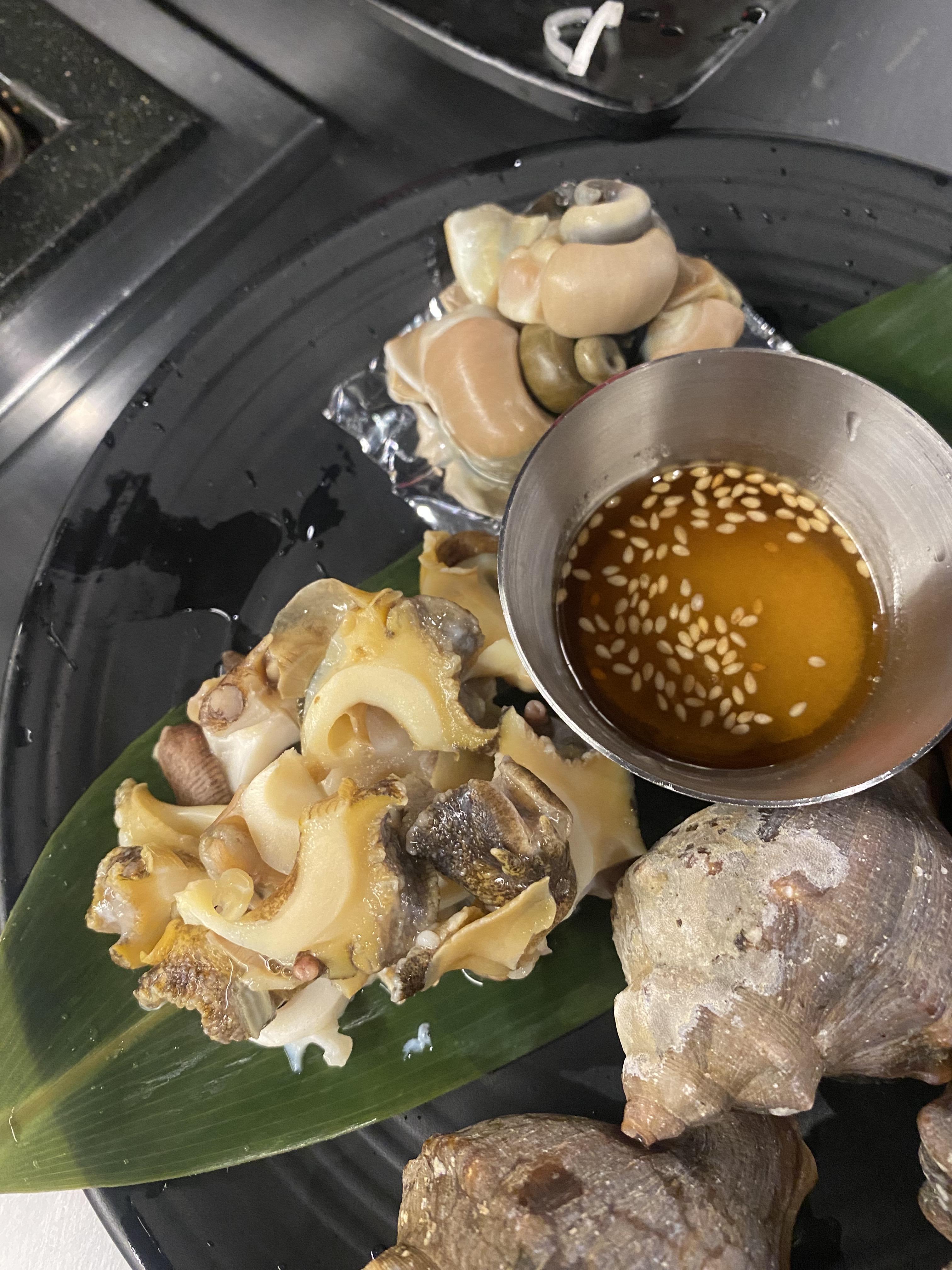 조개구이 살짝 물려갈 쯤에 소라 숙회 나온게 대박이었네여