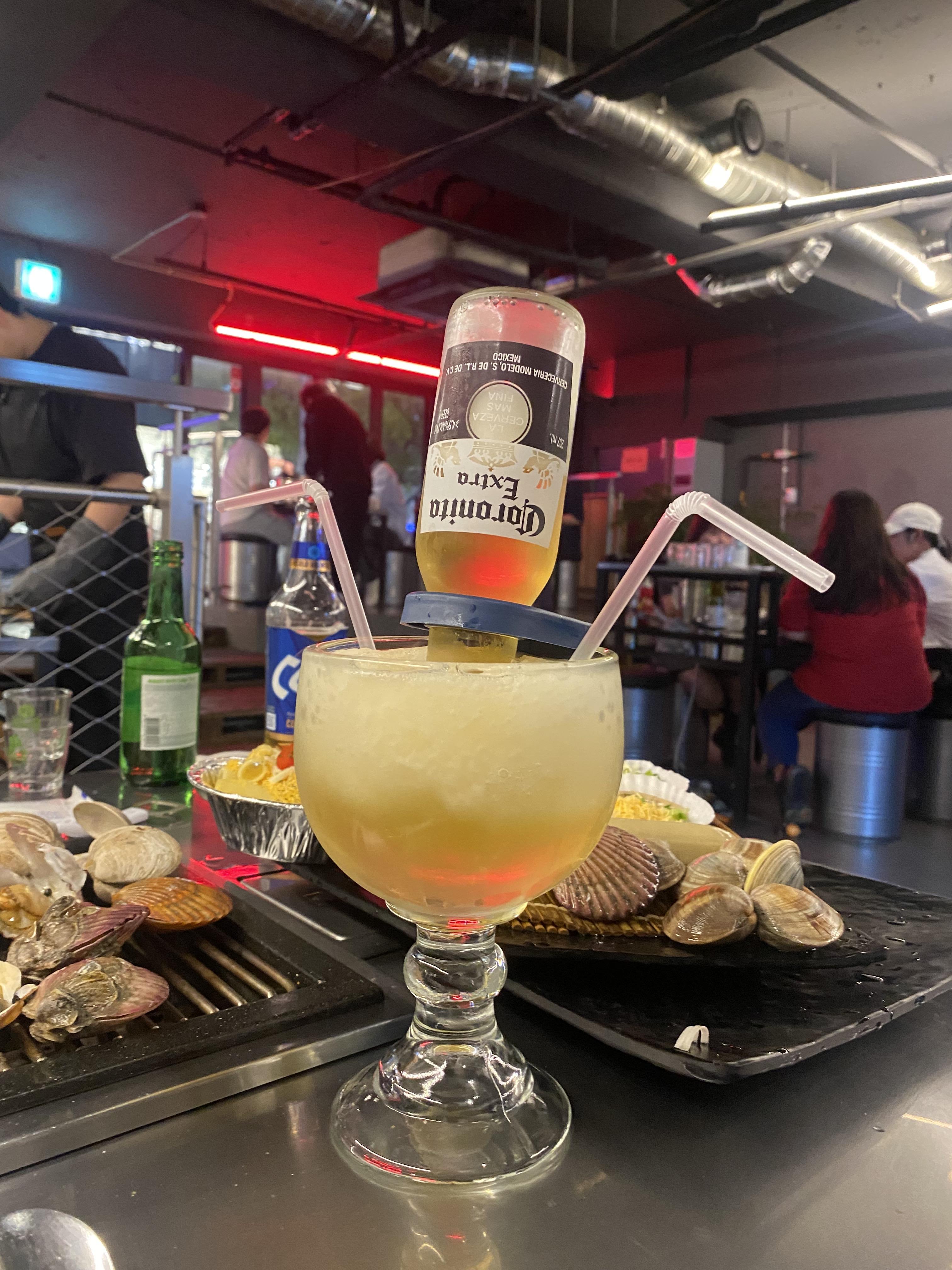 조개구이랑 조개전골중에 하나 선택하고(2인분) 소라숙회랑 코로나리타(칵테일 이름인가봄) 준다고 해서 홀라당 시켜버림