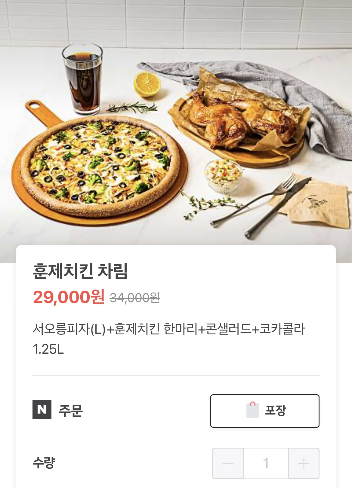 세트에는 훈제치킨도 한마리 포함되어 있고