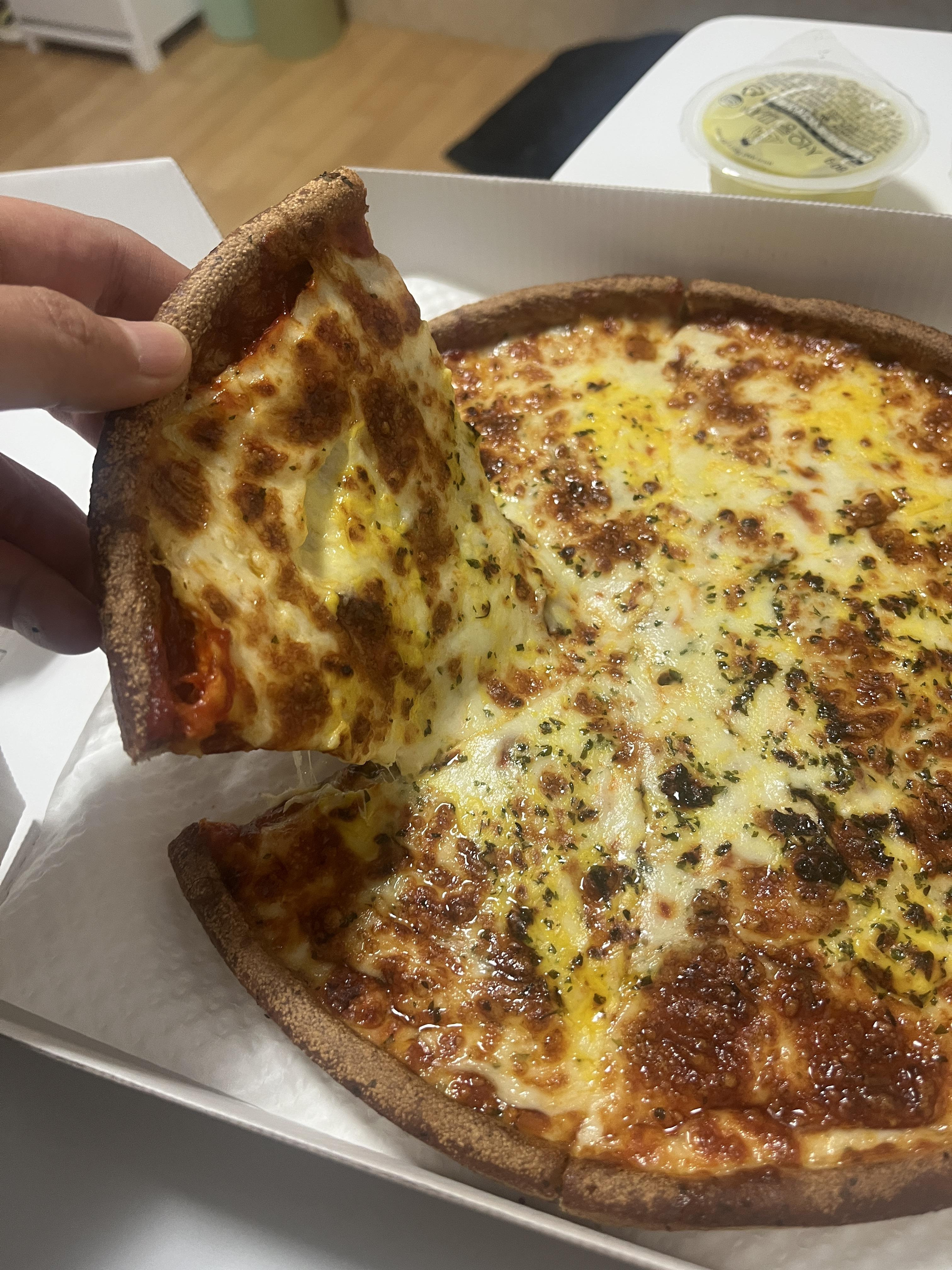 피자 한조각 들어서 맛봤는데 진짜 치즈가 흐를 정도로 많이 있어 심리적 만족감이 레전드입니다