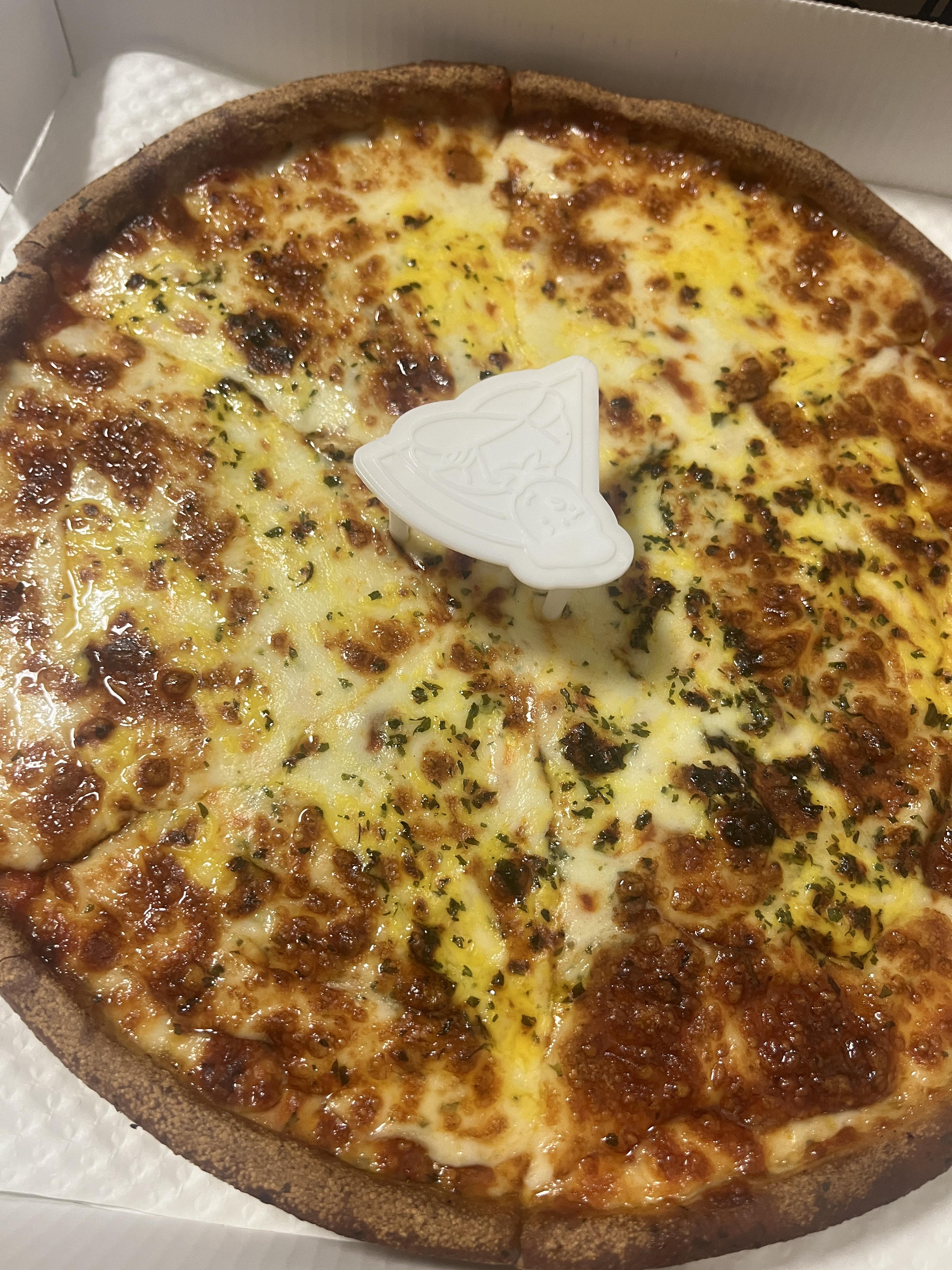 토핑은 없이 치즈가 흐를 정도로 왕창 있는 피자입니다