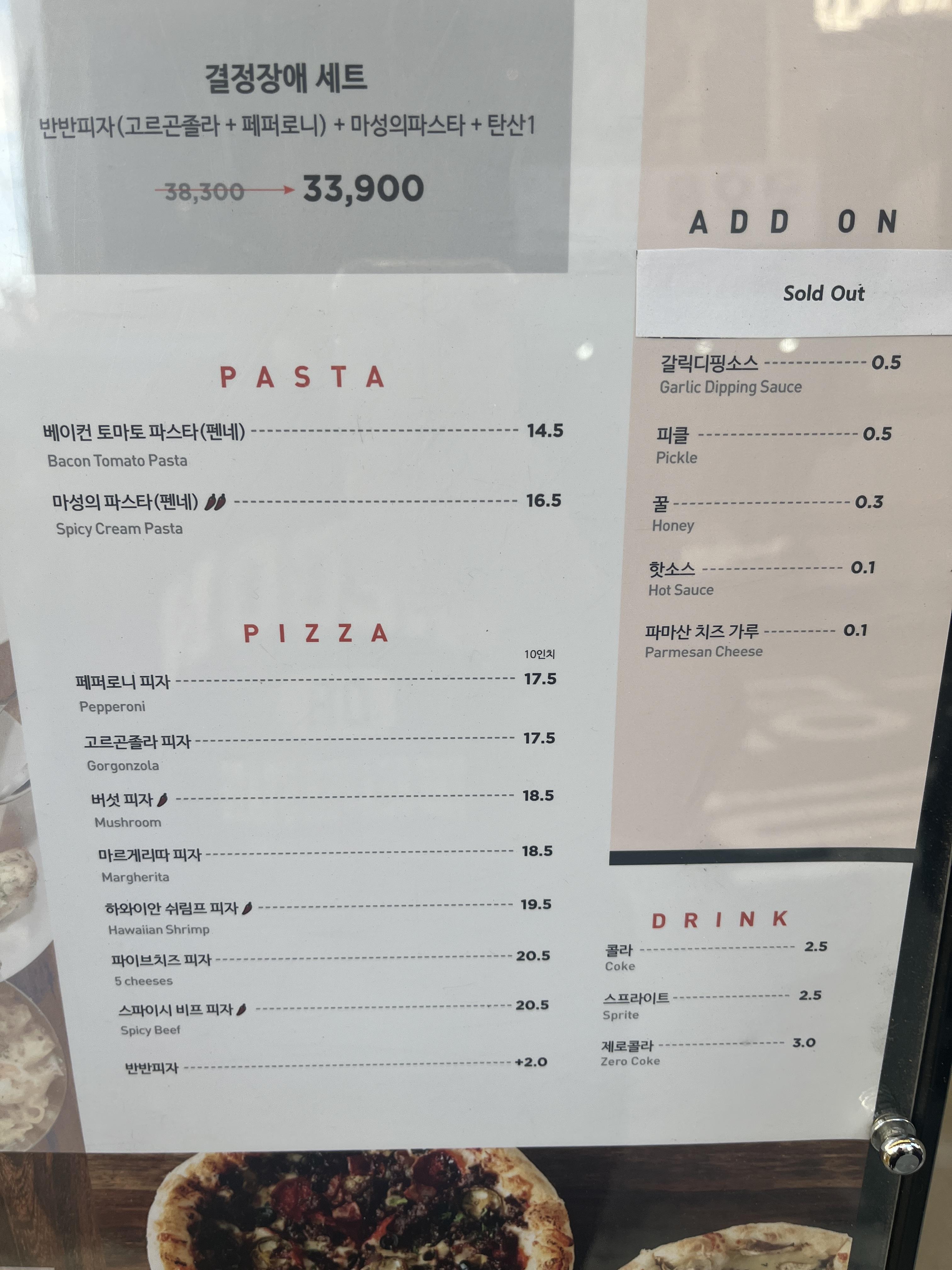치즈 피자와 먹기에는 아주 살짝 느끼한 감이 있습니다