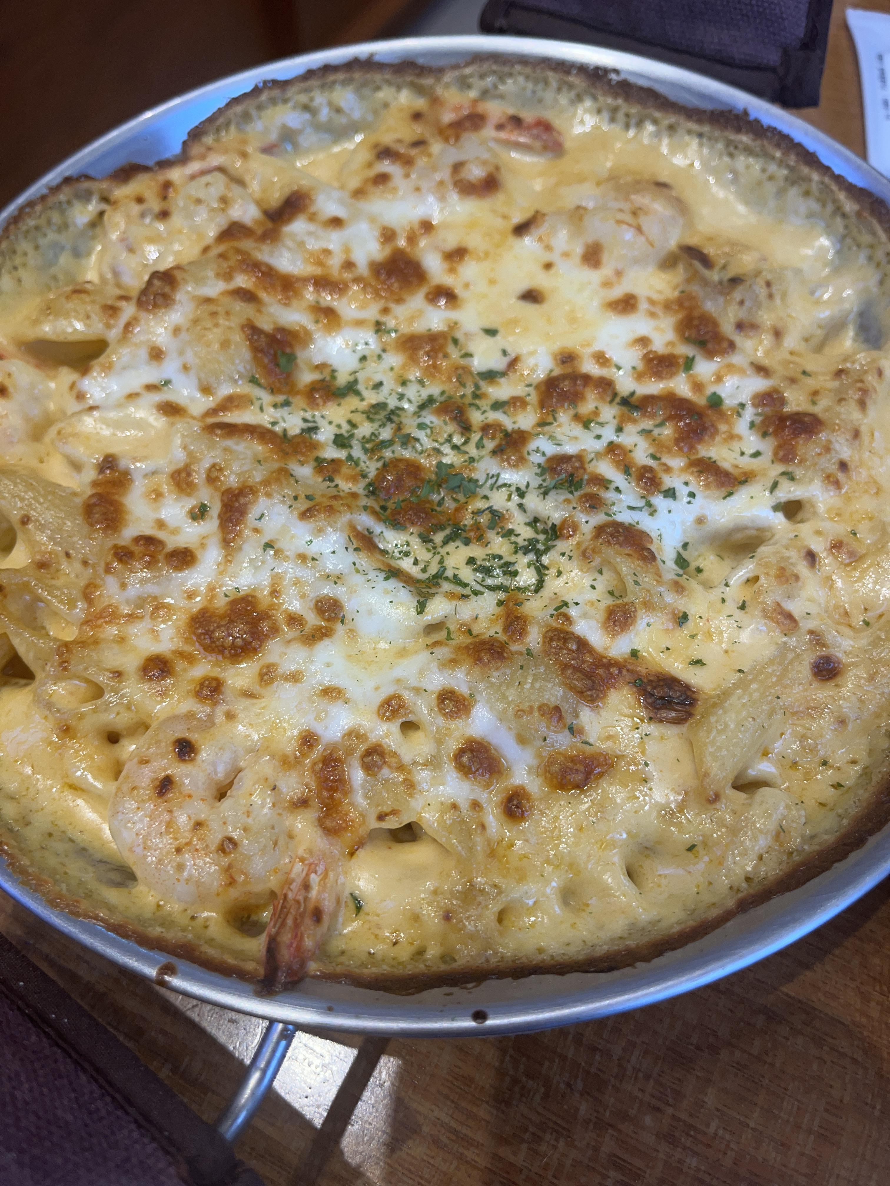 모짜렐라 치즈로 덮여있는 크림 펜네 파스타입니다