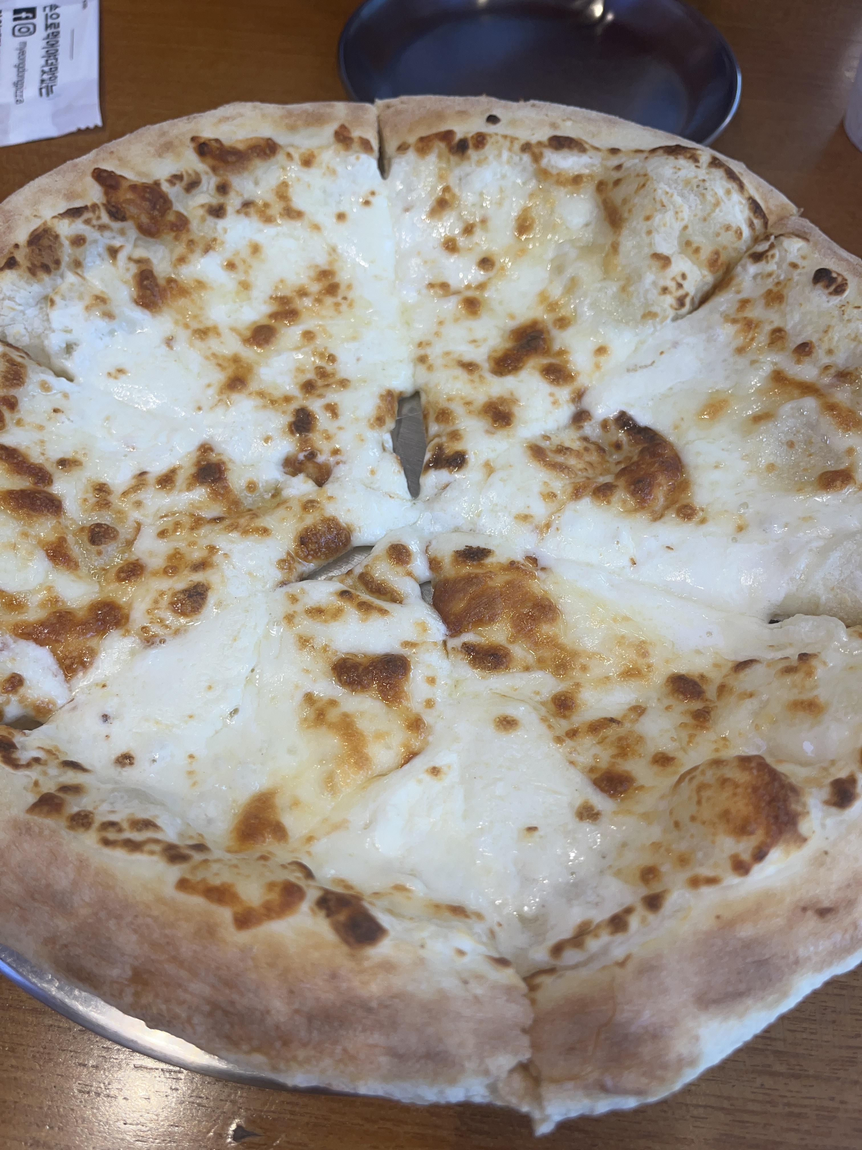 피자 도우가 얇아서 치즈의 맛을 방해하지 않고 온전히 치즈를 느끼게 해줍니다