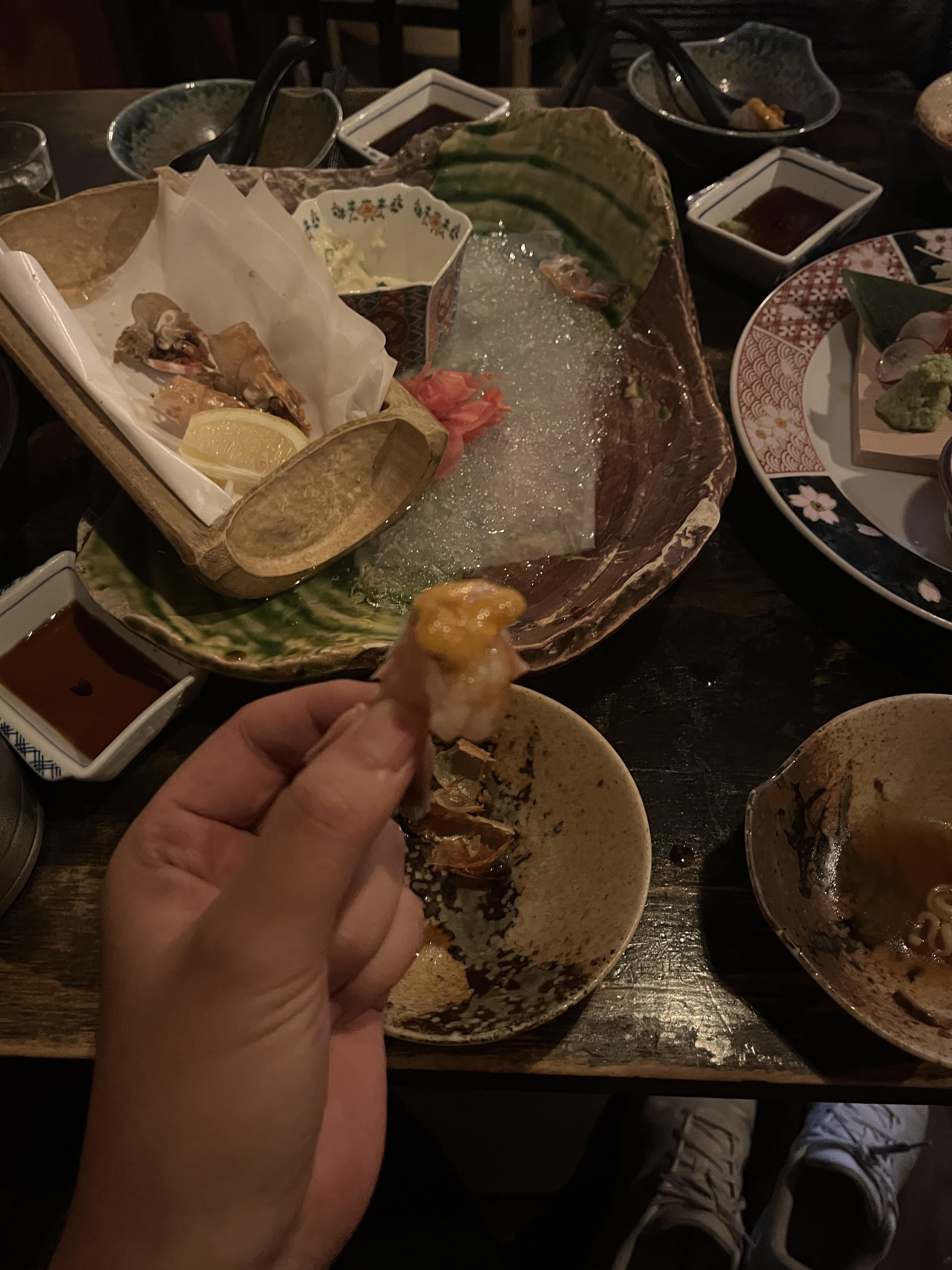 이렇게 딱새우에 성게알을 올려 먹으면 극강의 궁합을 자랑합니다