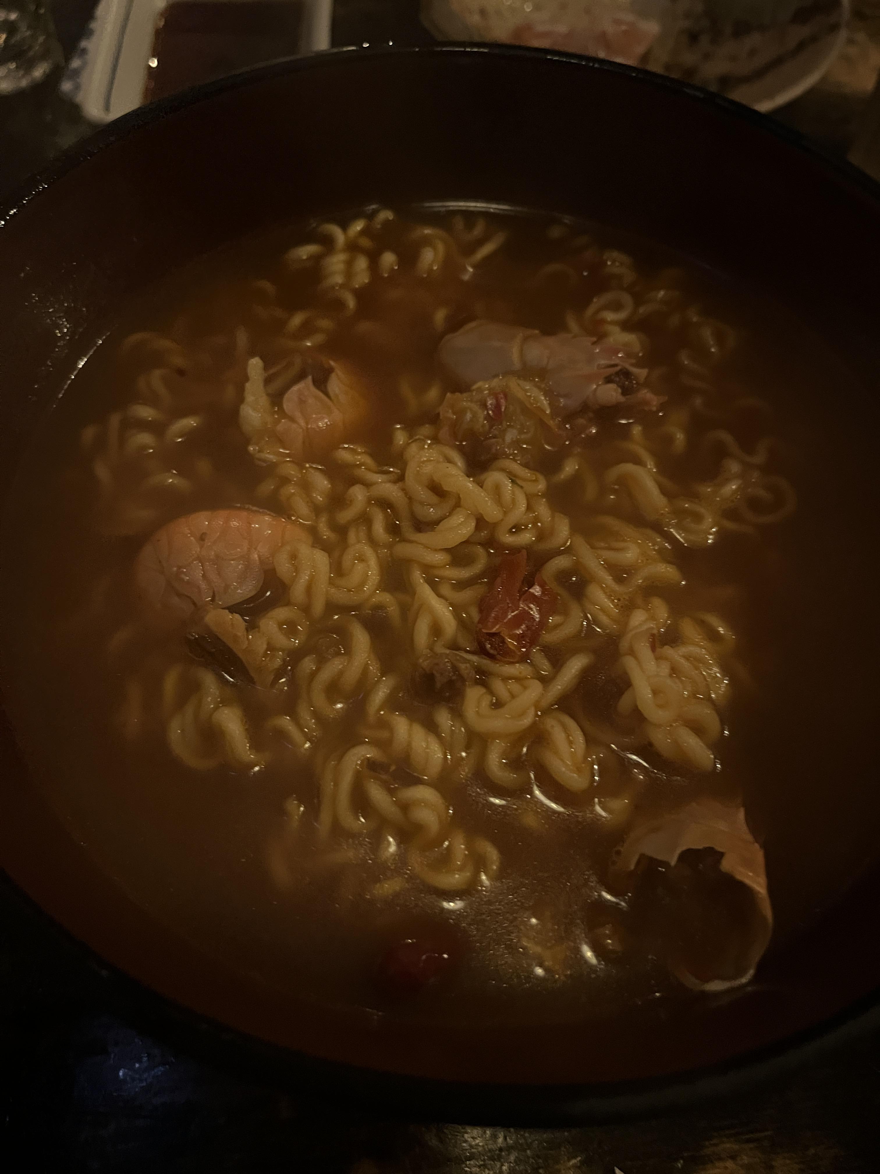 딱새우를 넣어 끓인 라면을 서비스로 주십니다