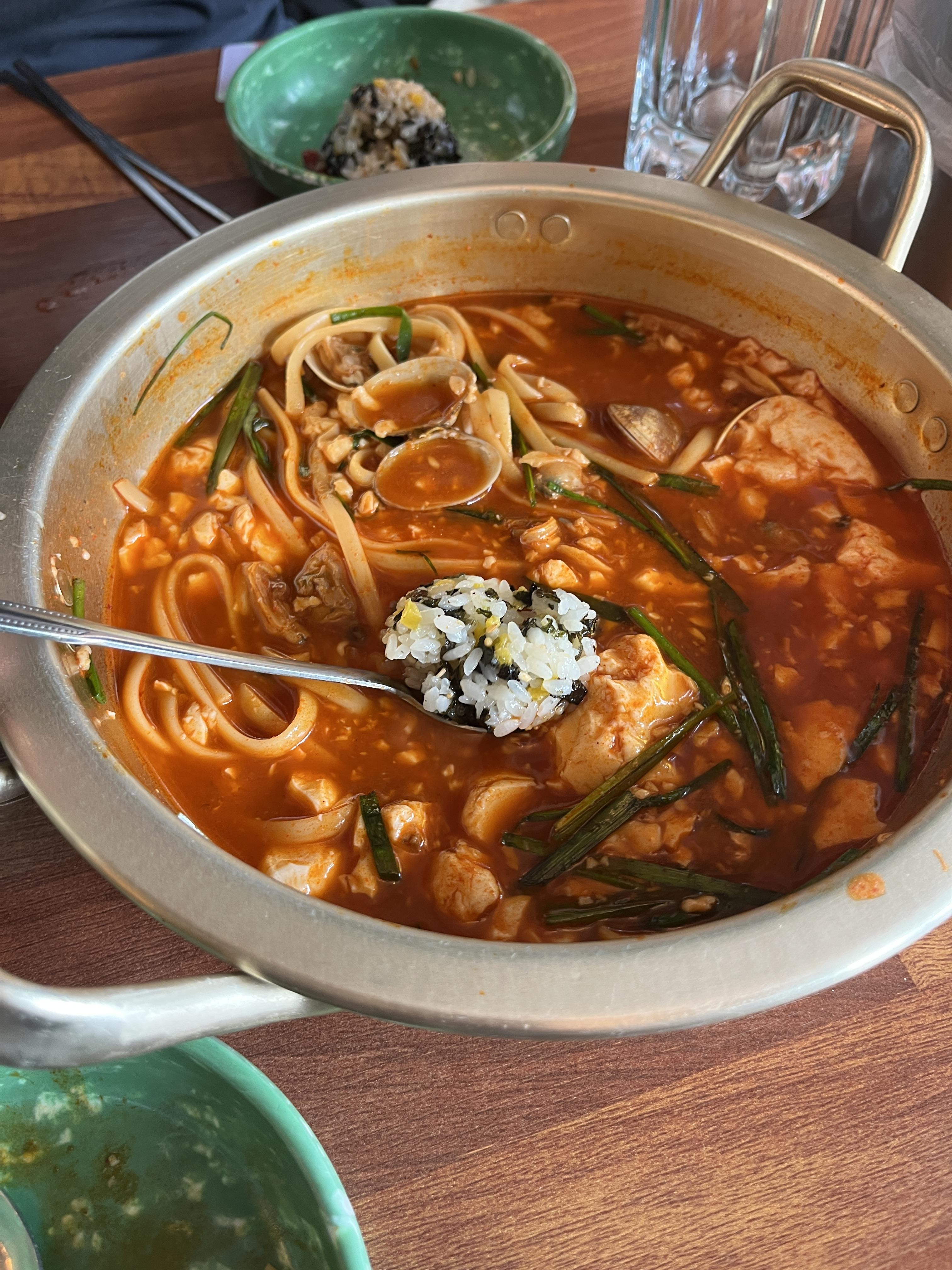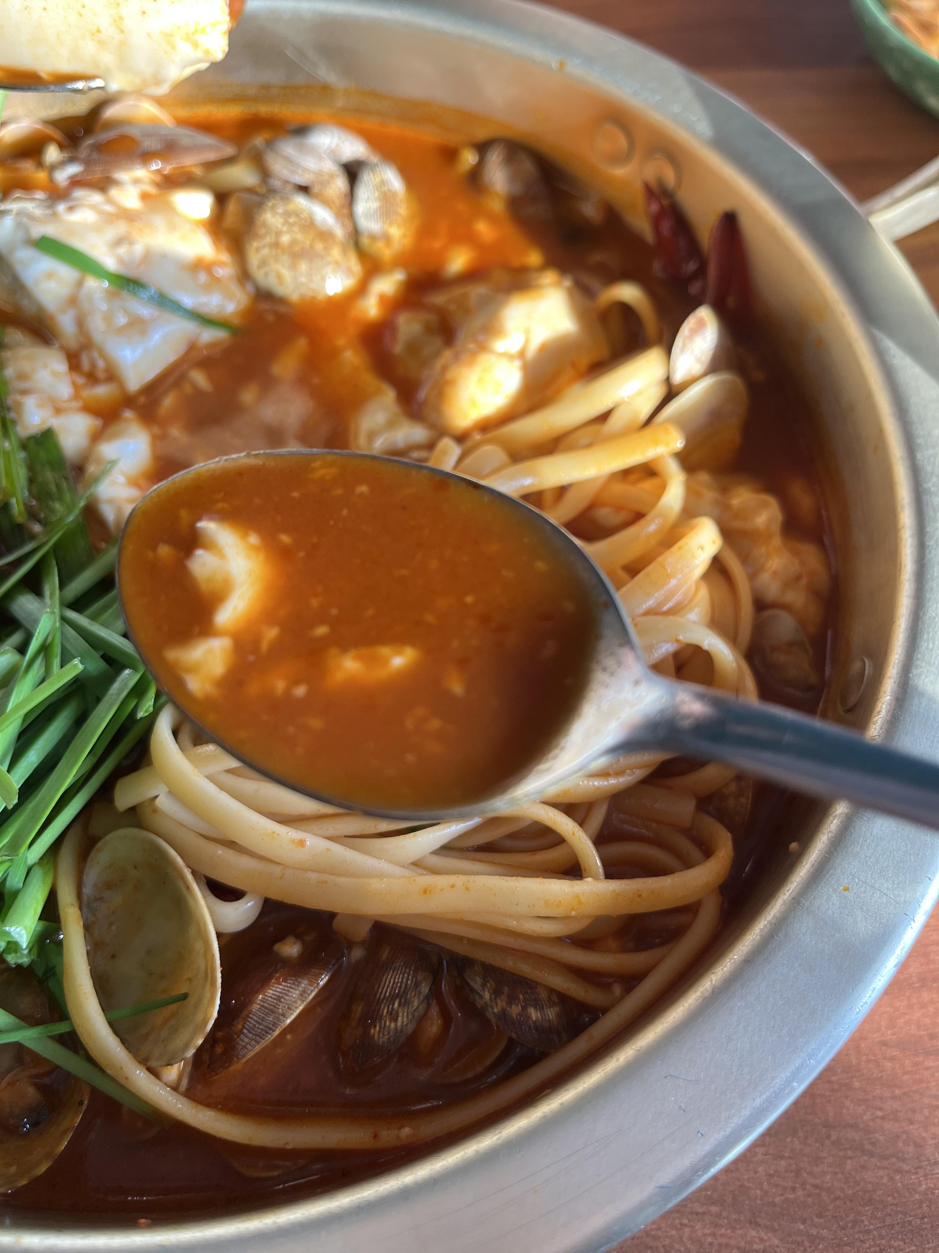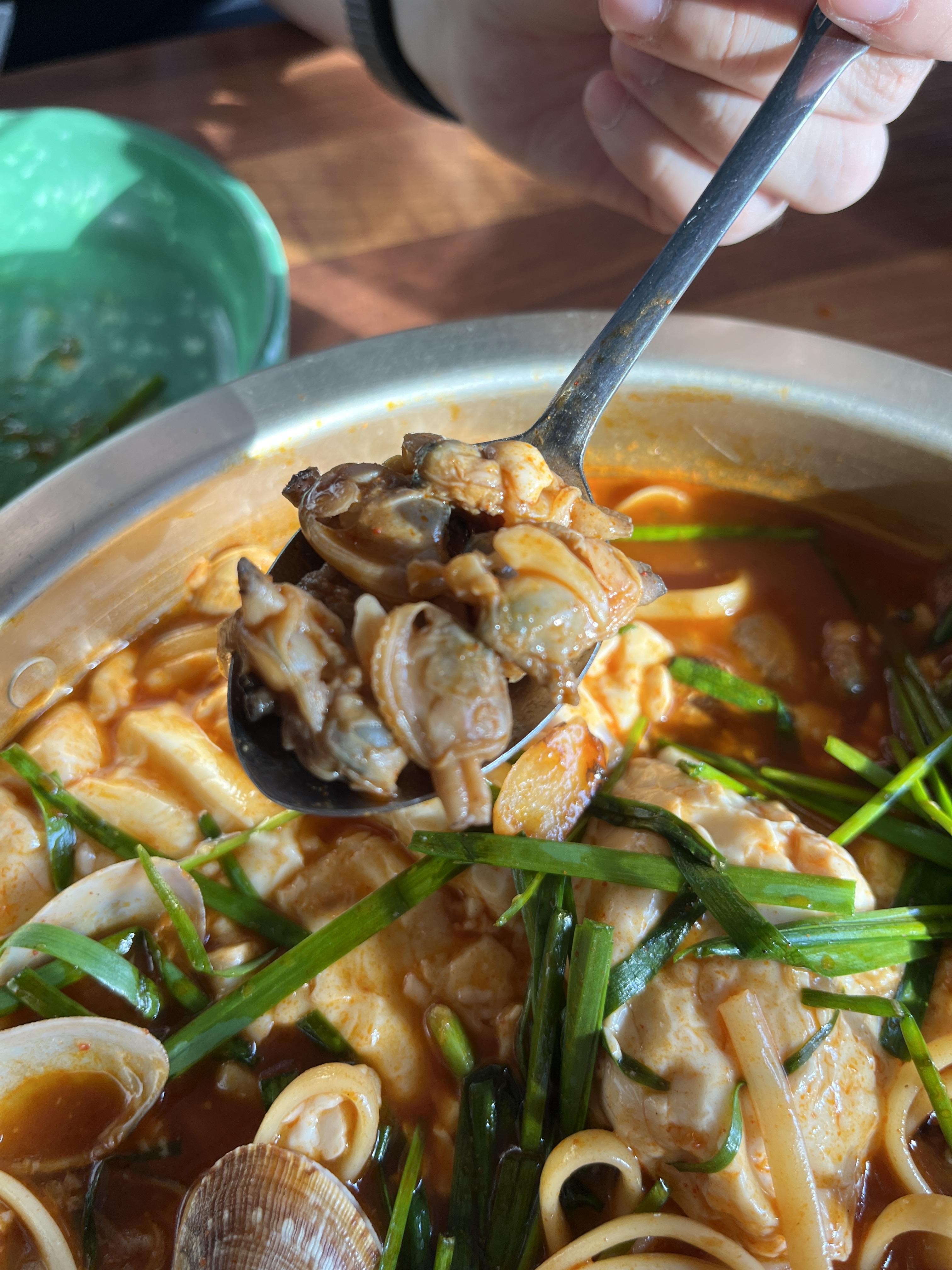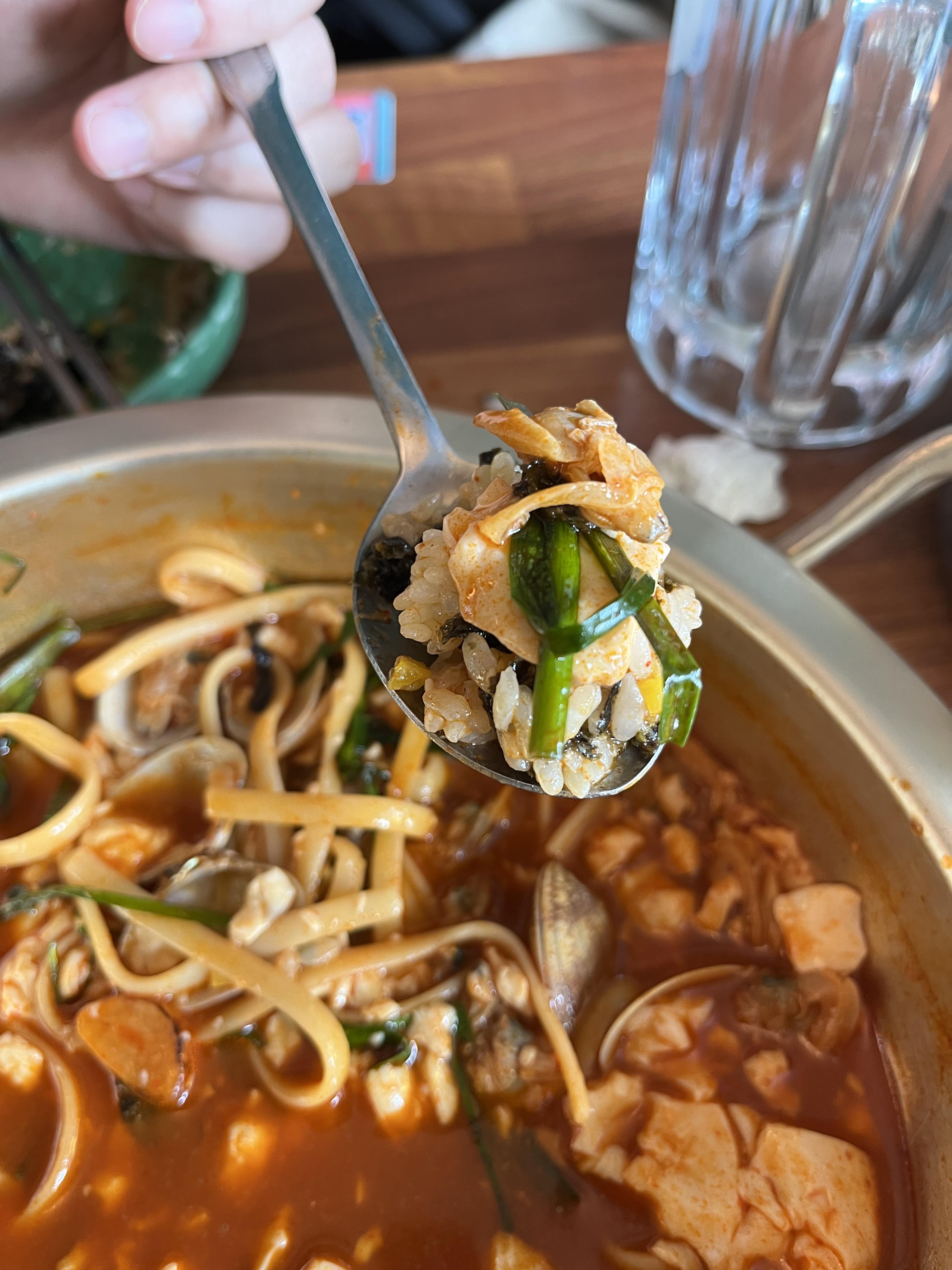 요렇게 순두부랑 바지락 올려서 국물 적셔먹으니