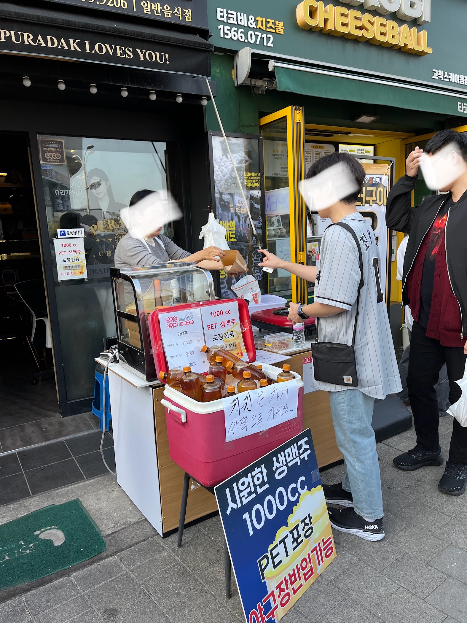 가게 앞 우측에는 야구장반입가능한 페트병 생맥을 팔고 있었어요