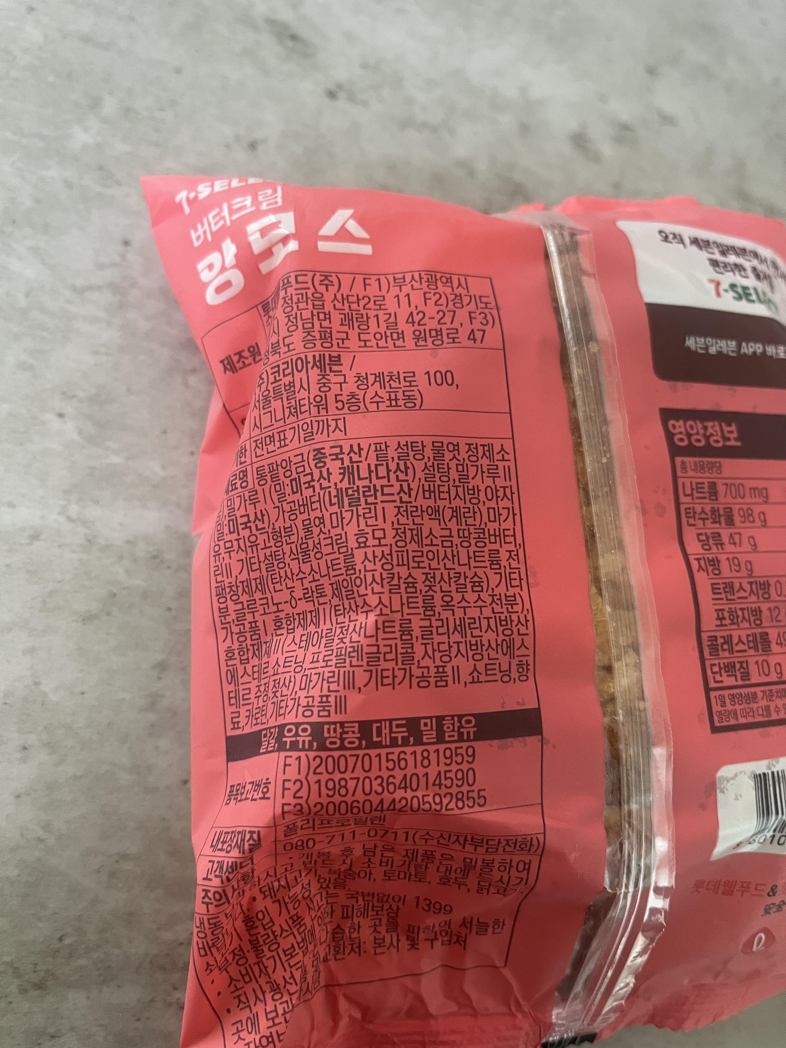 세븐일레븐 버터크림앙모스 성분표 입니다