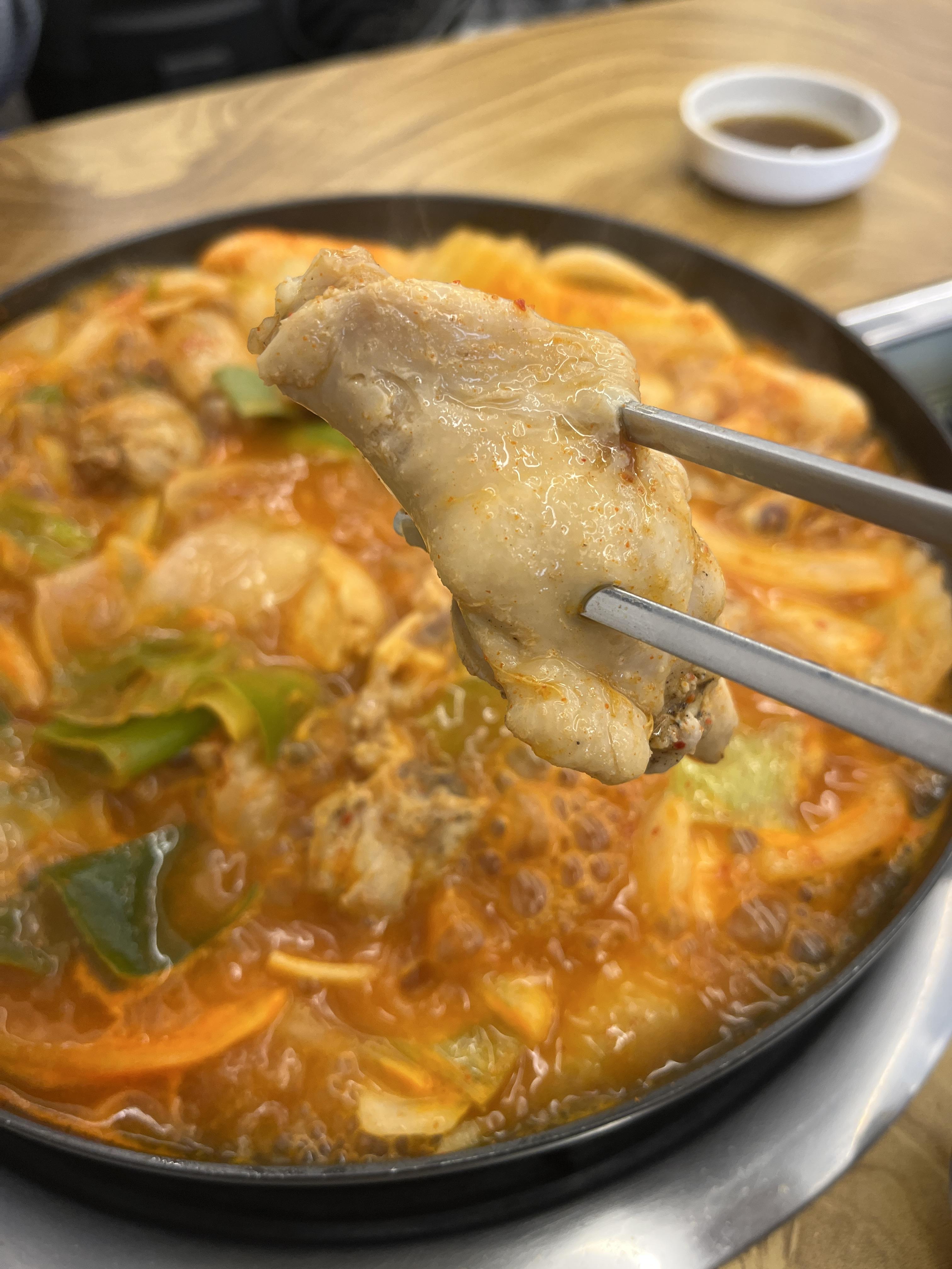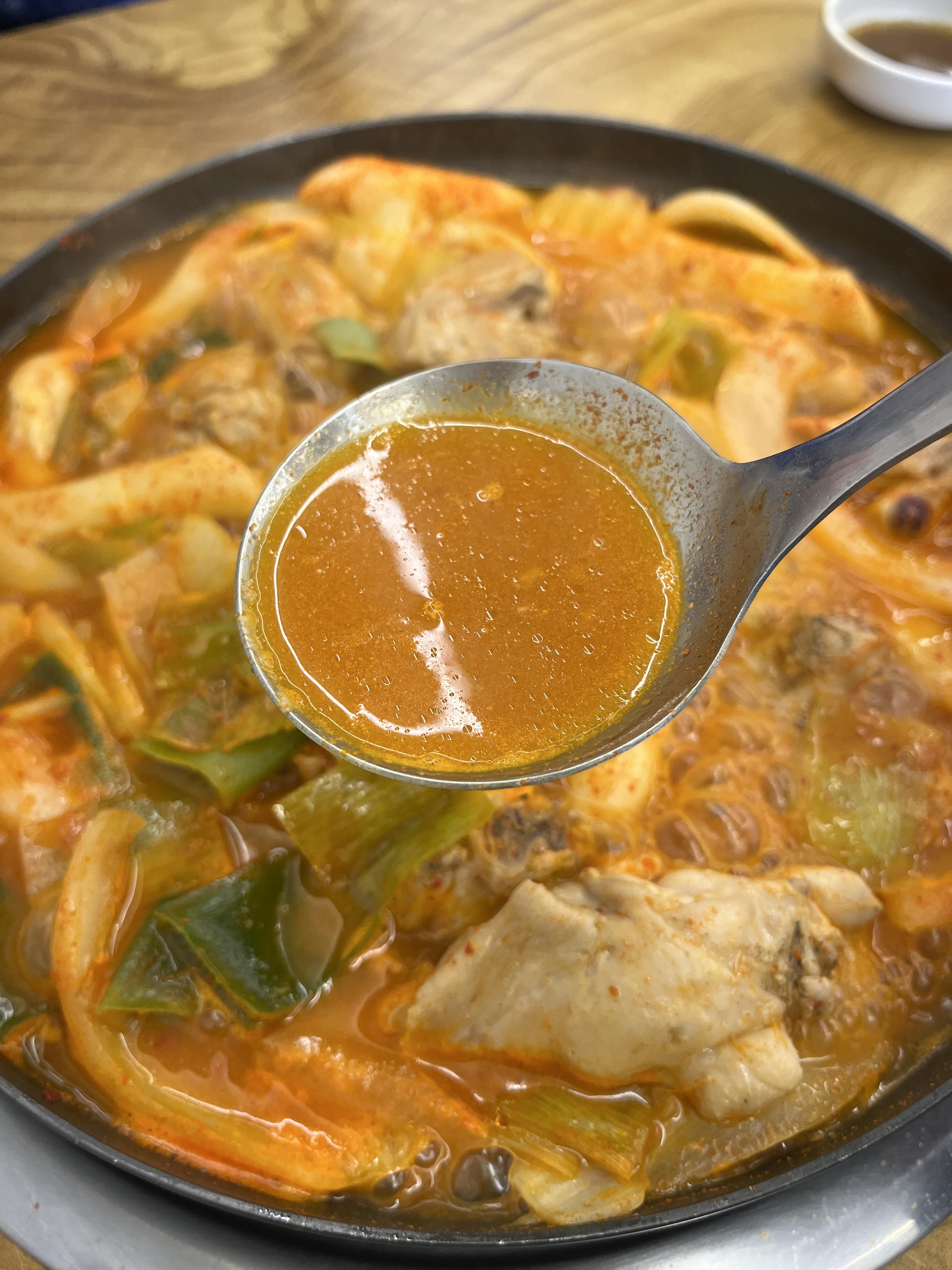 국물닭갈비 양념이 배어들어 진짜 맛있습니다
