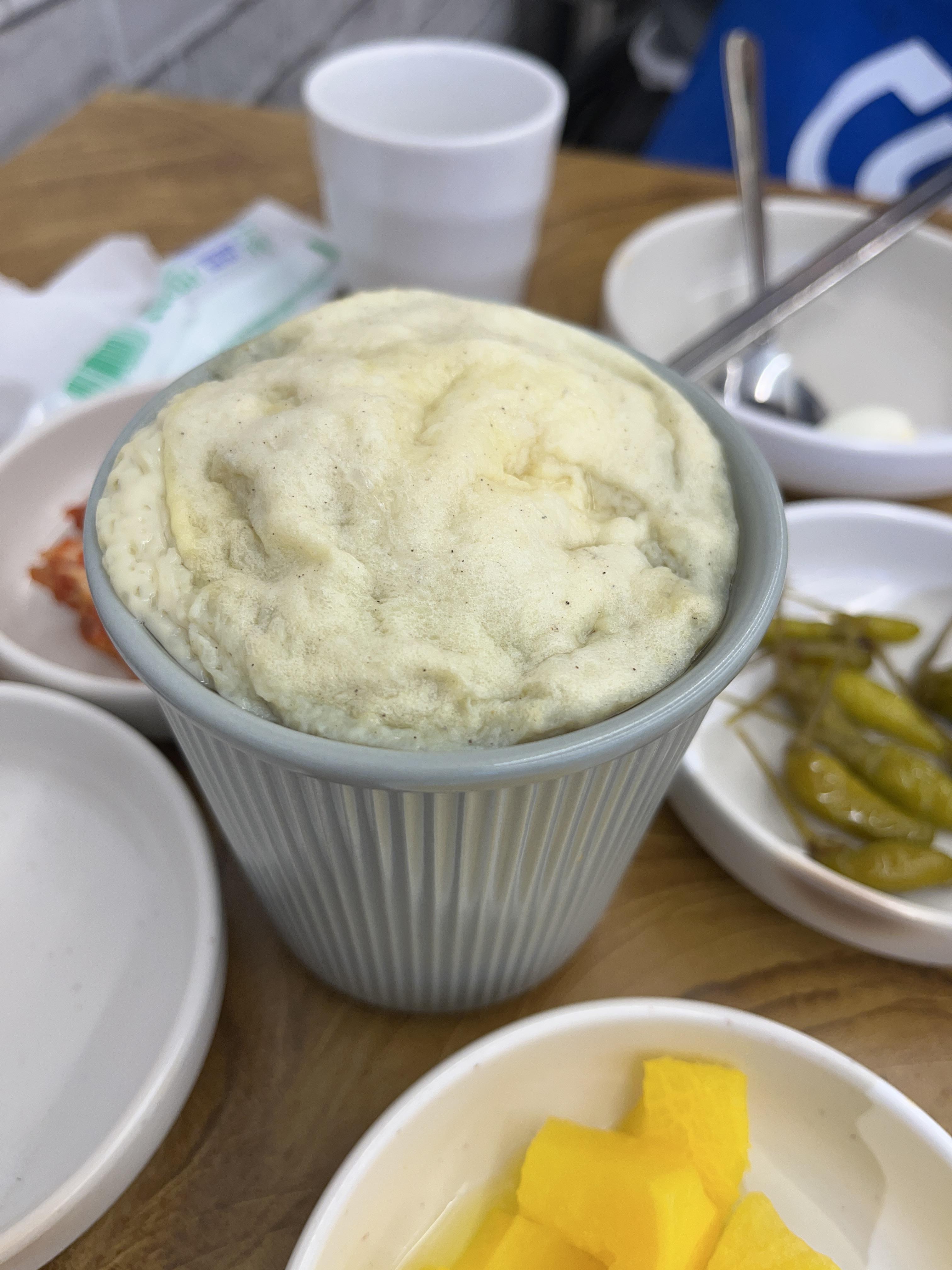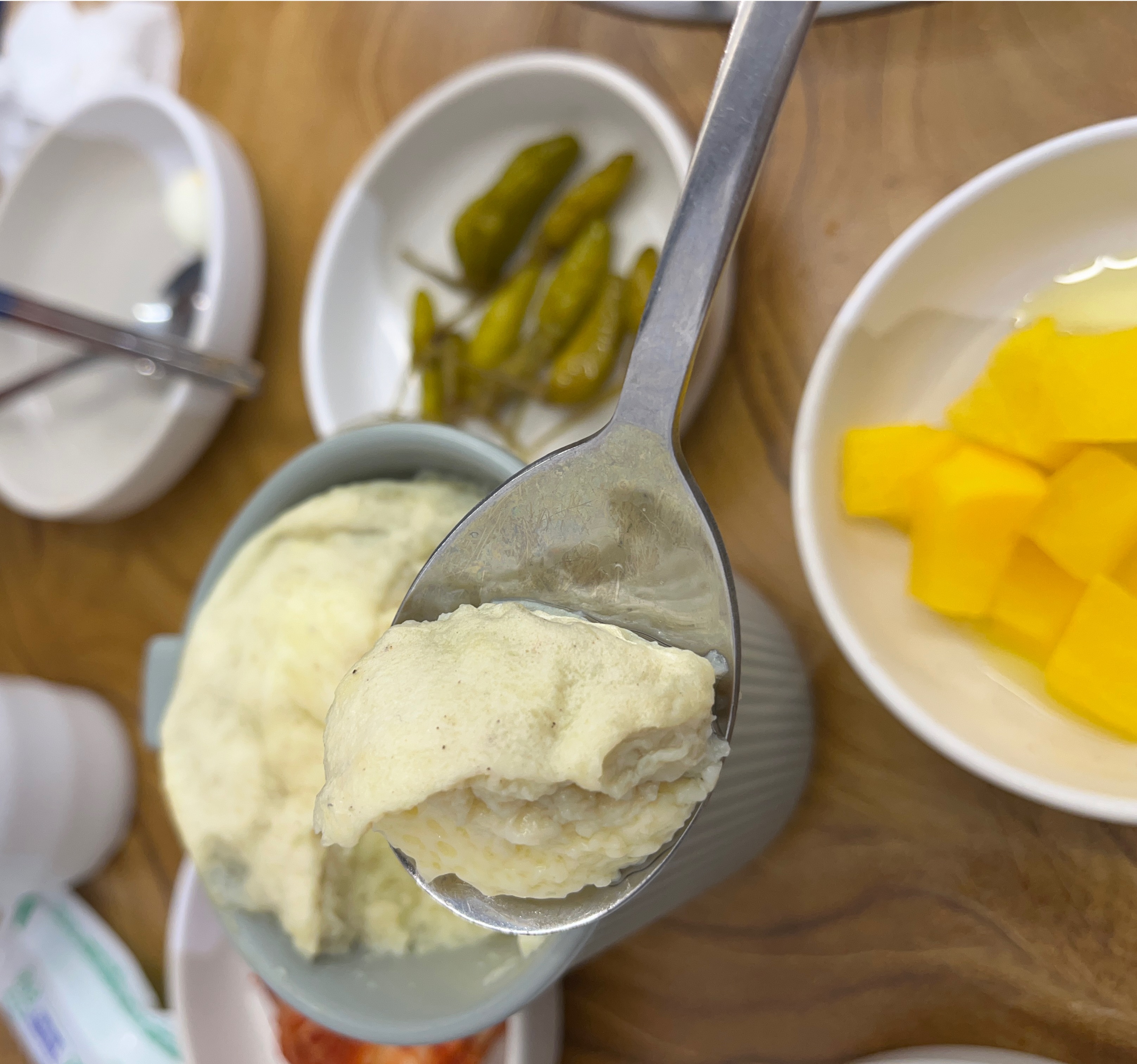 먹는 죽 처럼 계란 넣고 밥알 비벼서 만들어주십니다