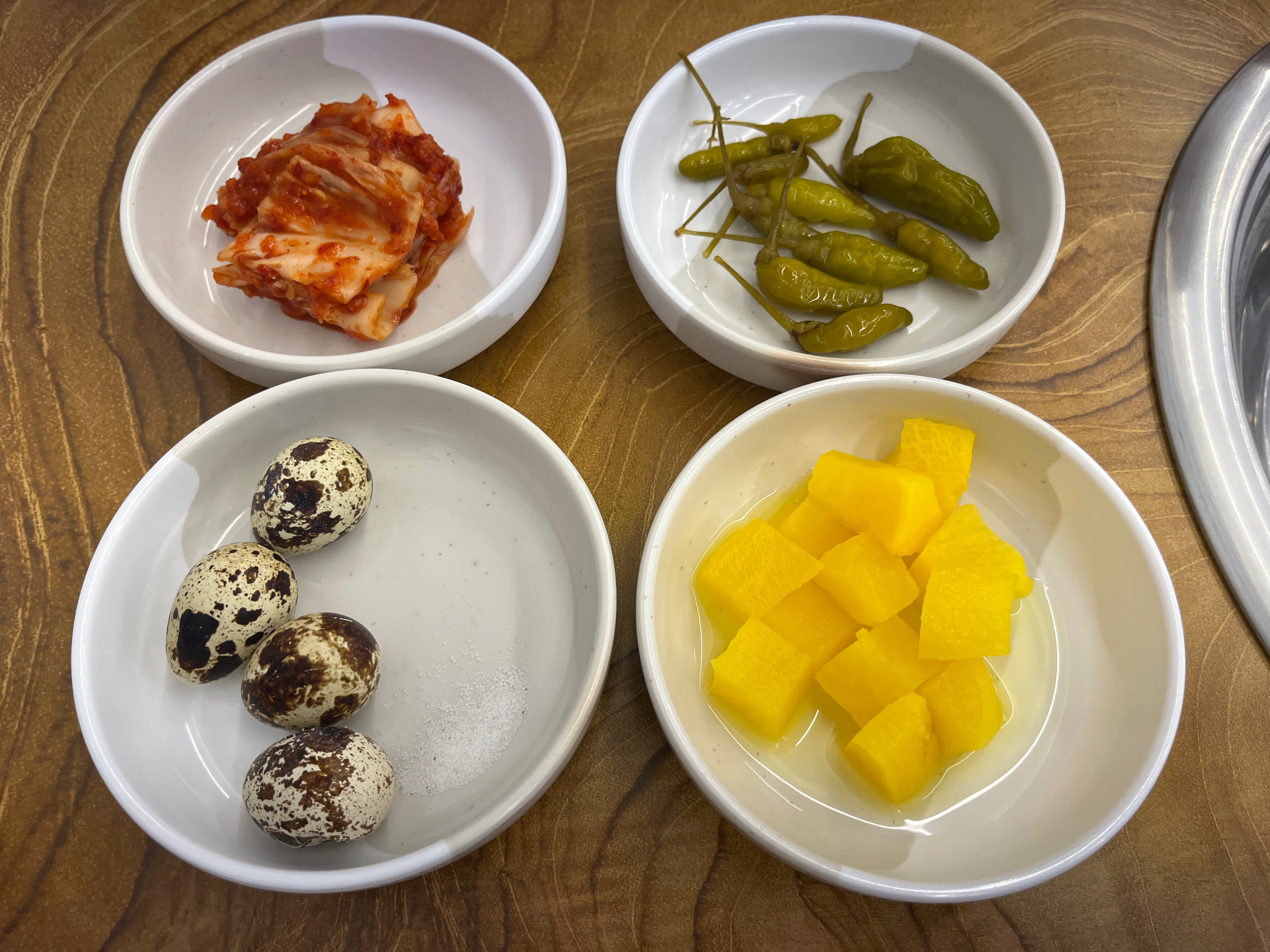 고추장아찌 단무지 김치 메추리알이 나옵니다