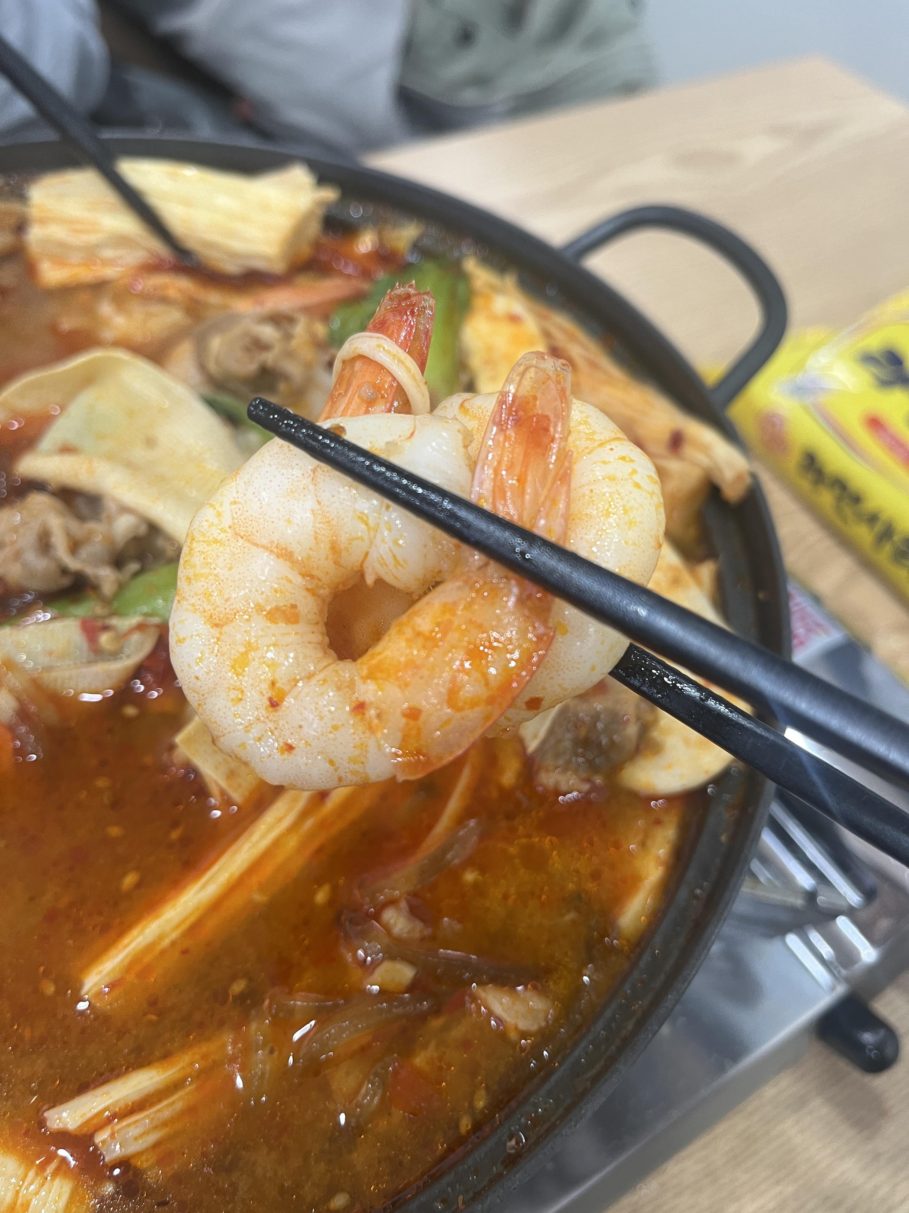 해산물이며 마라전골 재료가 눈에 보이기
