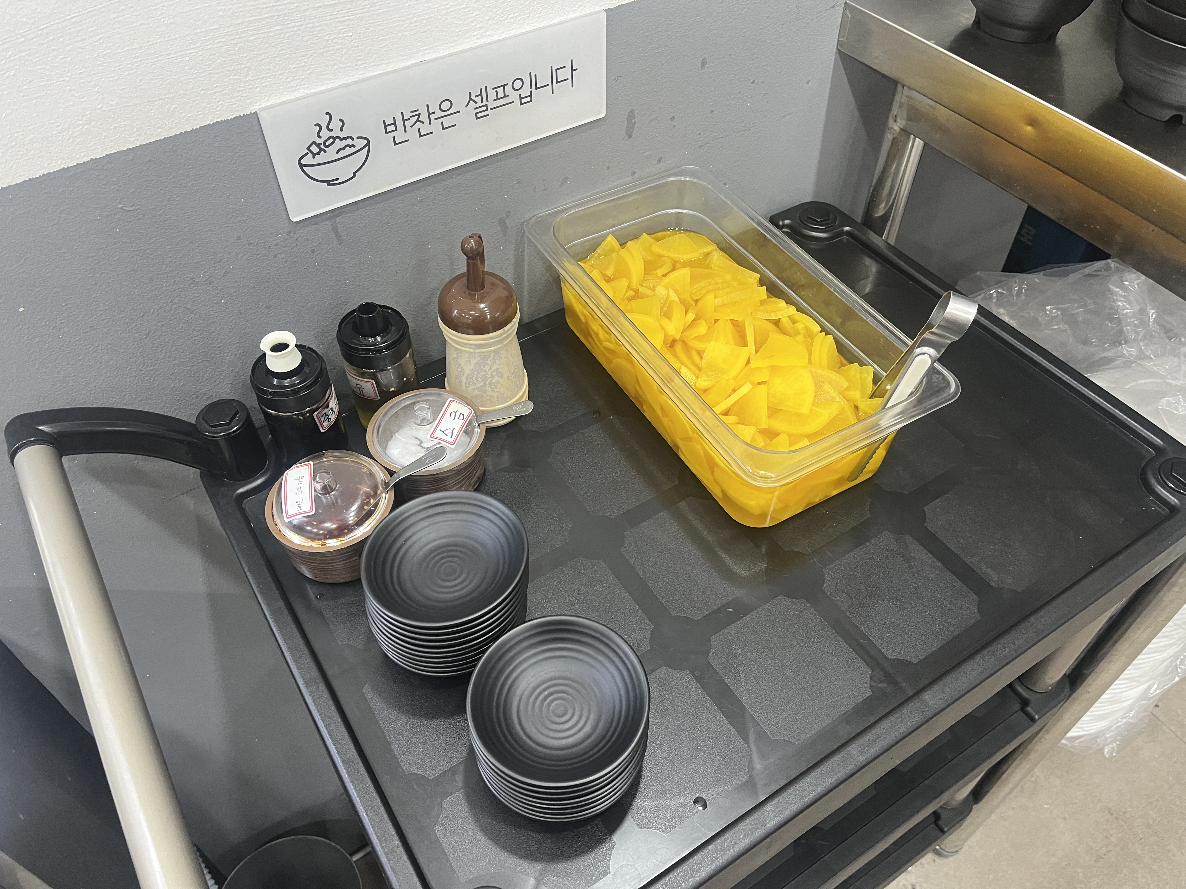 소스와 단무지를 가져다 먹을 수 있는데요
