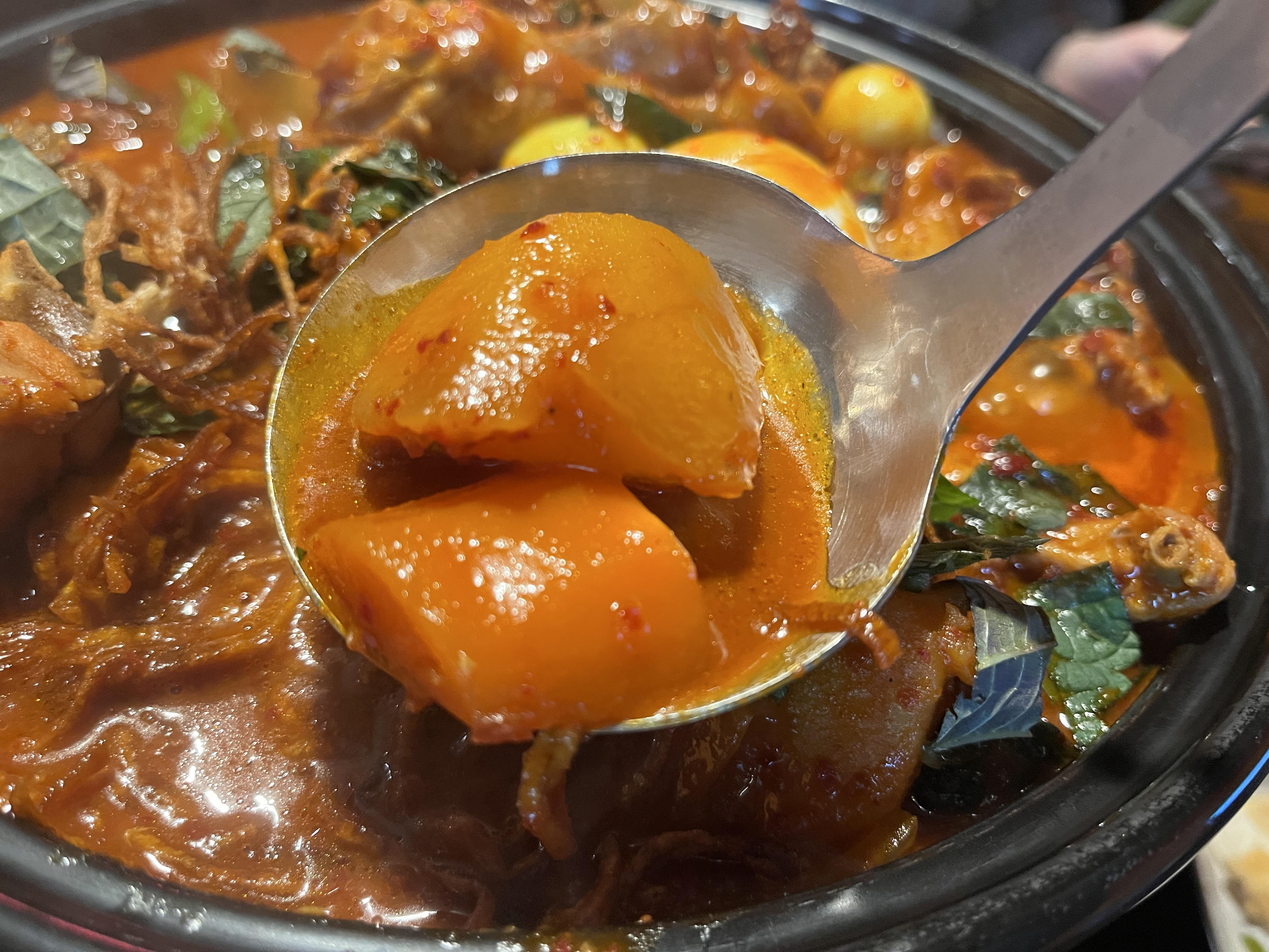 튀긴 감자를 푹 적셔먹으면