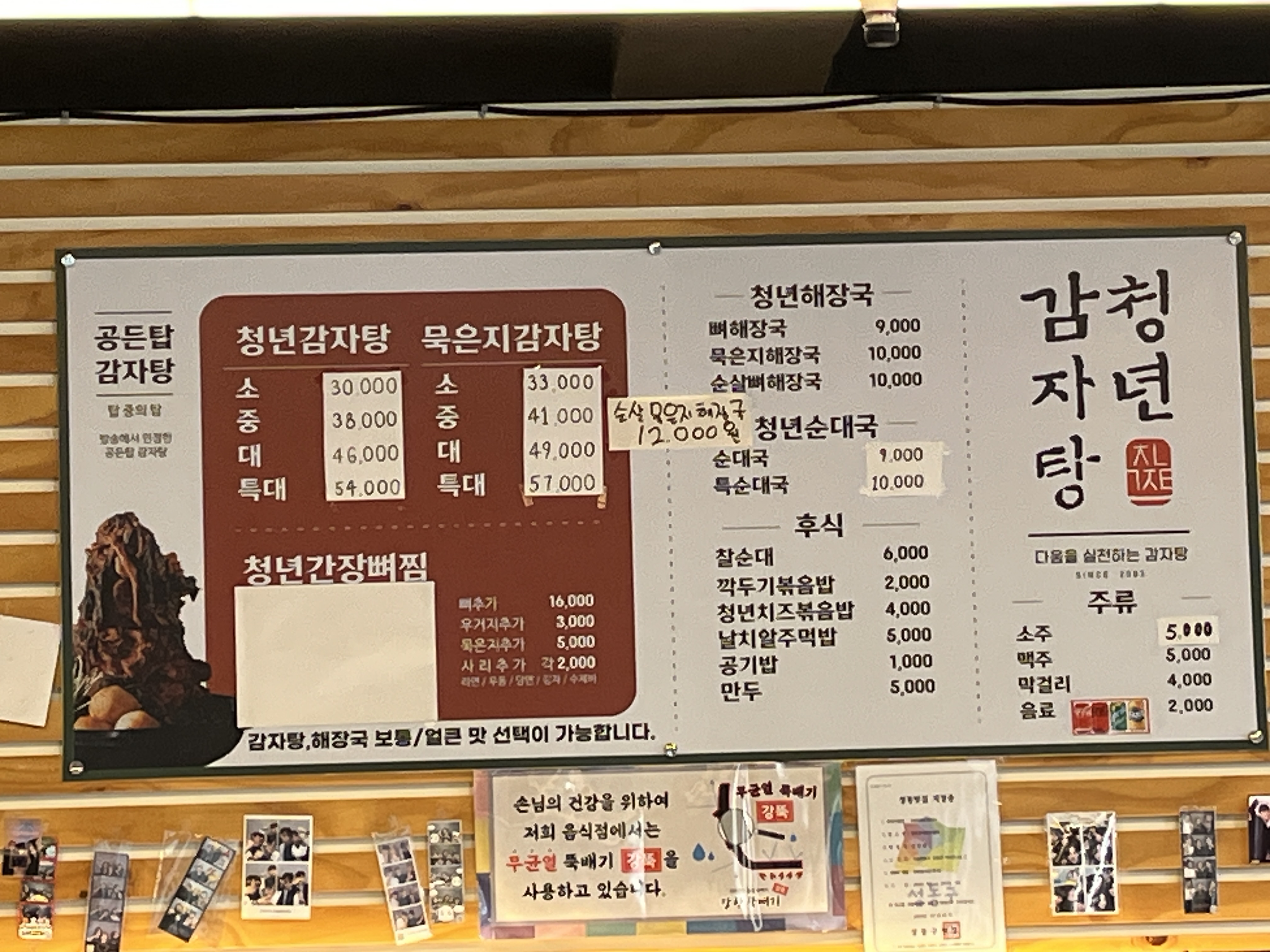 왕십리 24시 감자탕 메뉴판