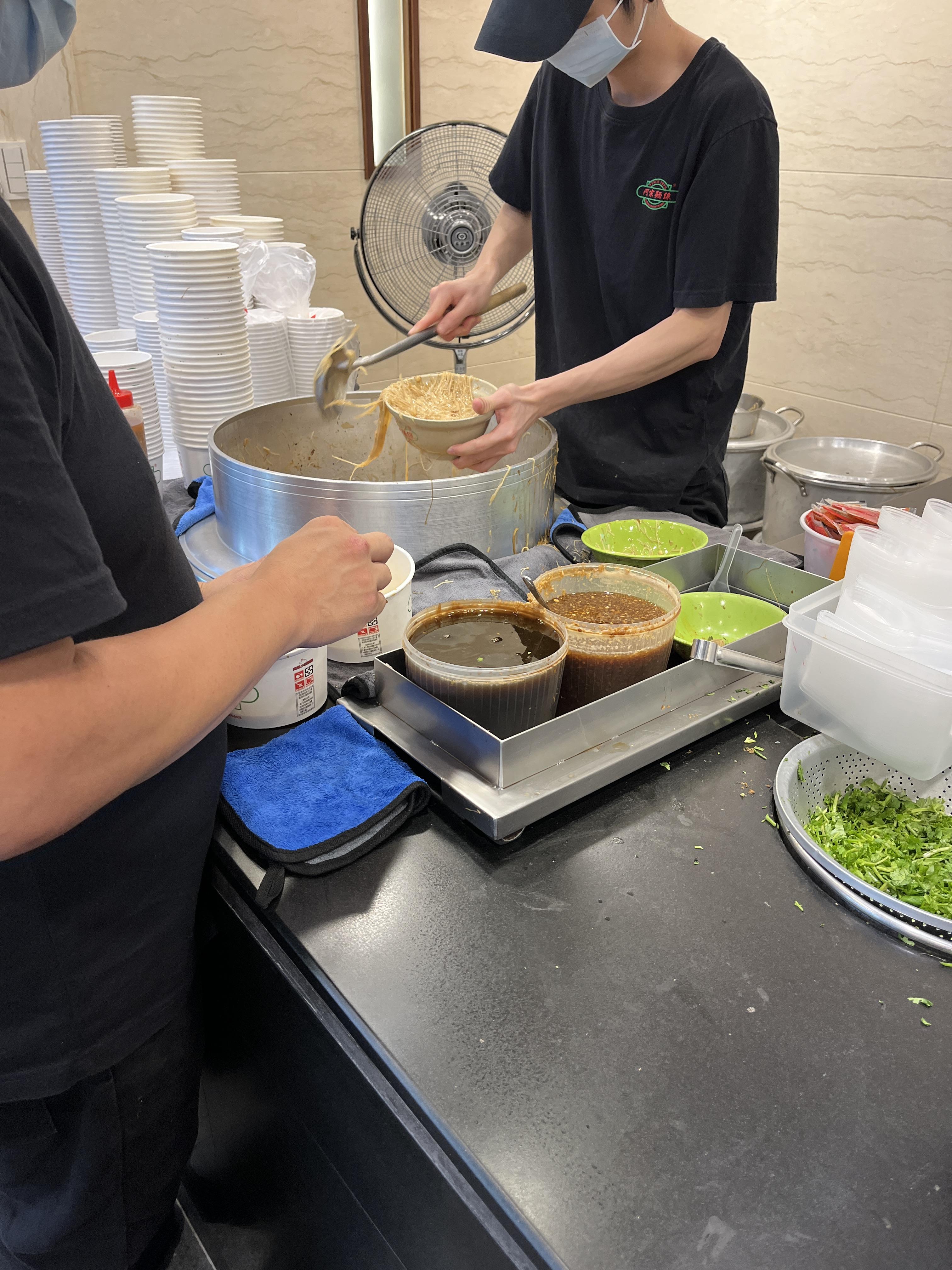 저렇게 짱빠른 속도로 국수를 담아줍니다
