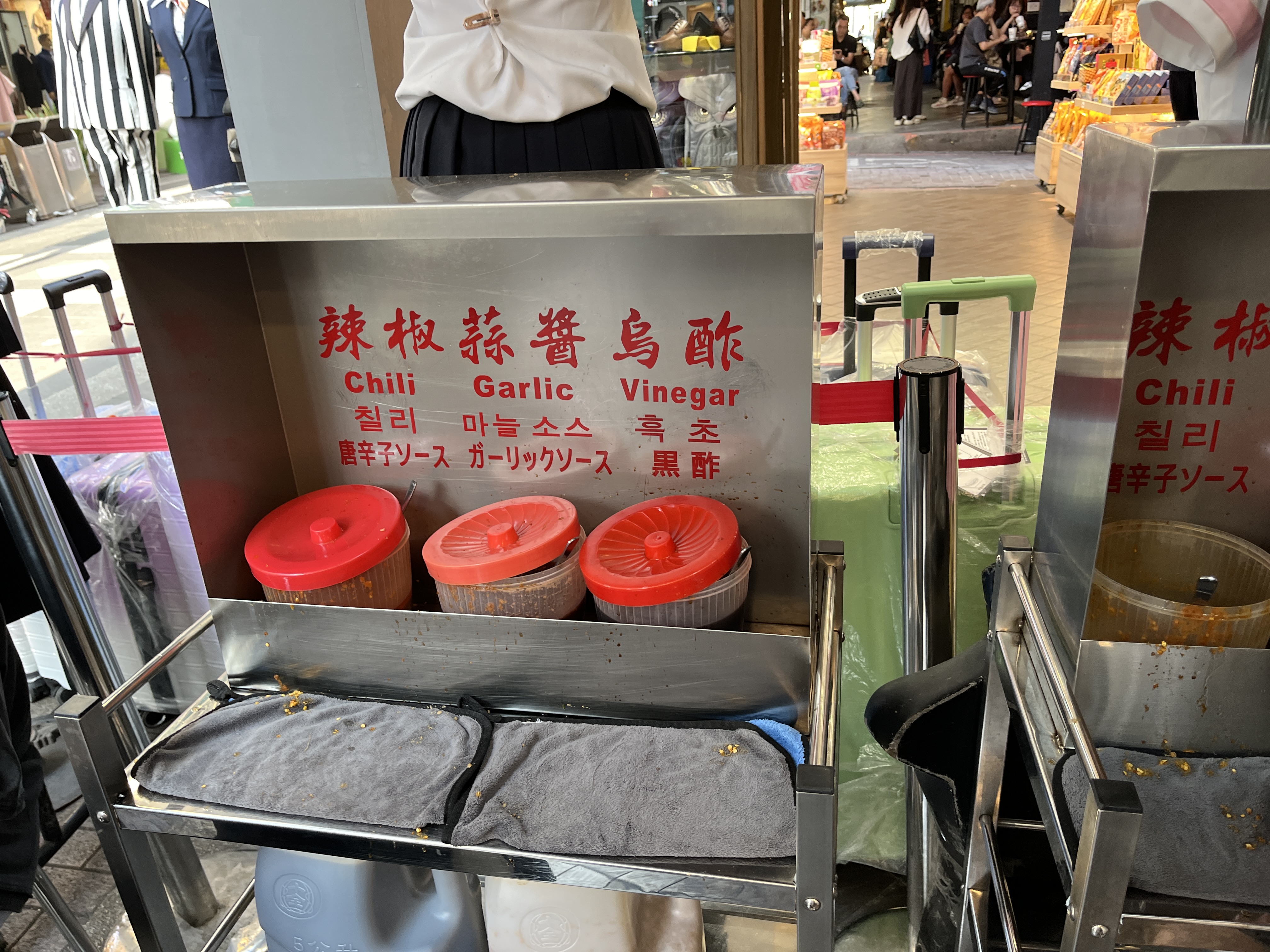 기호에 맞게 칠리나 마늘소스, 흑초를 뿌려먹으면 되는데