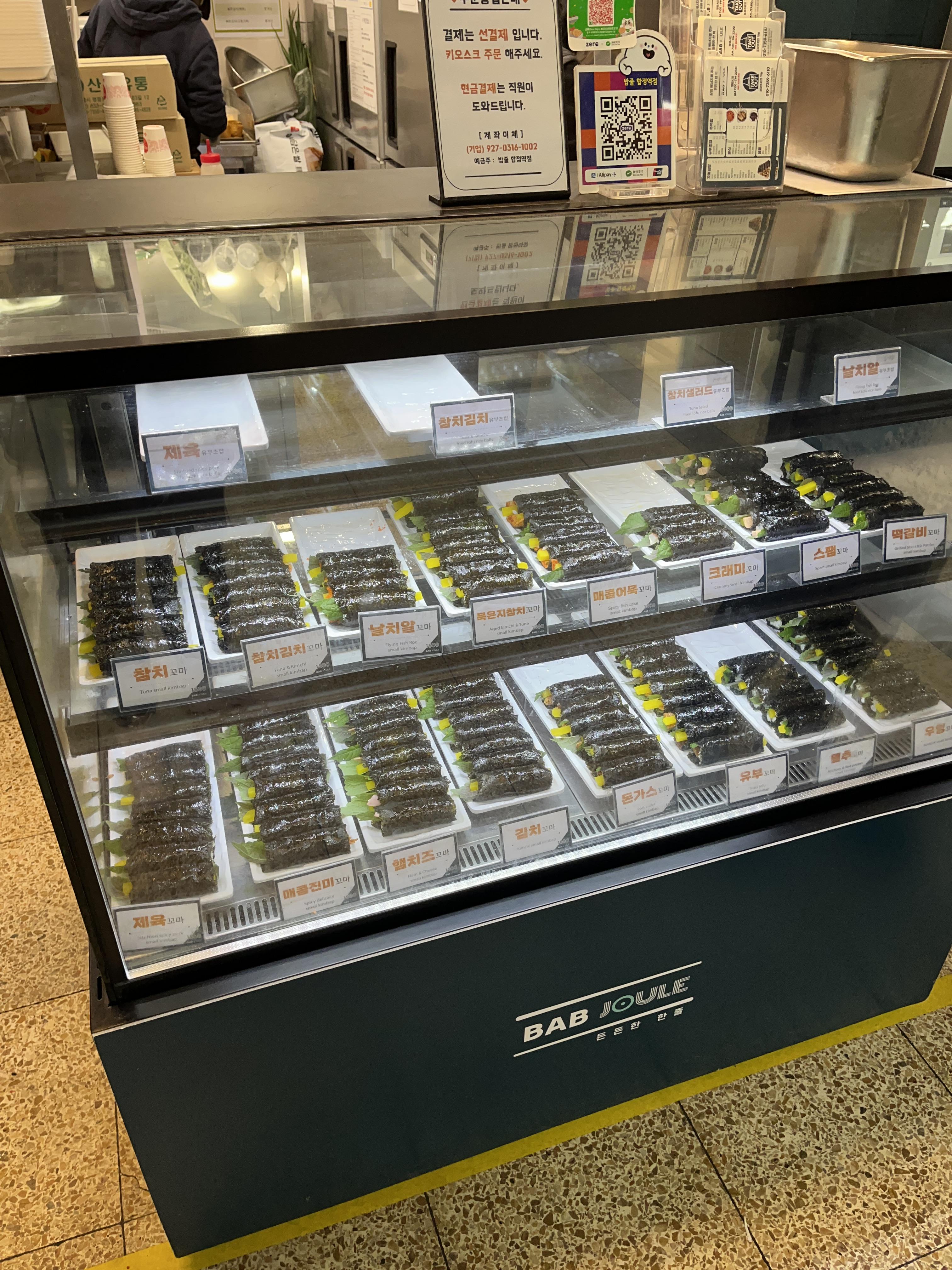꼬마김밥입니다 종류별로 천원에서 1500원 정도해요