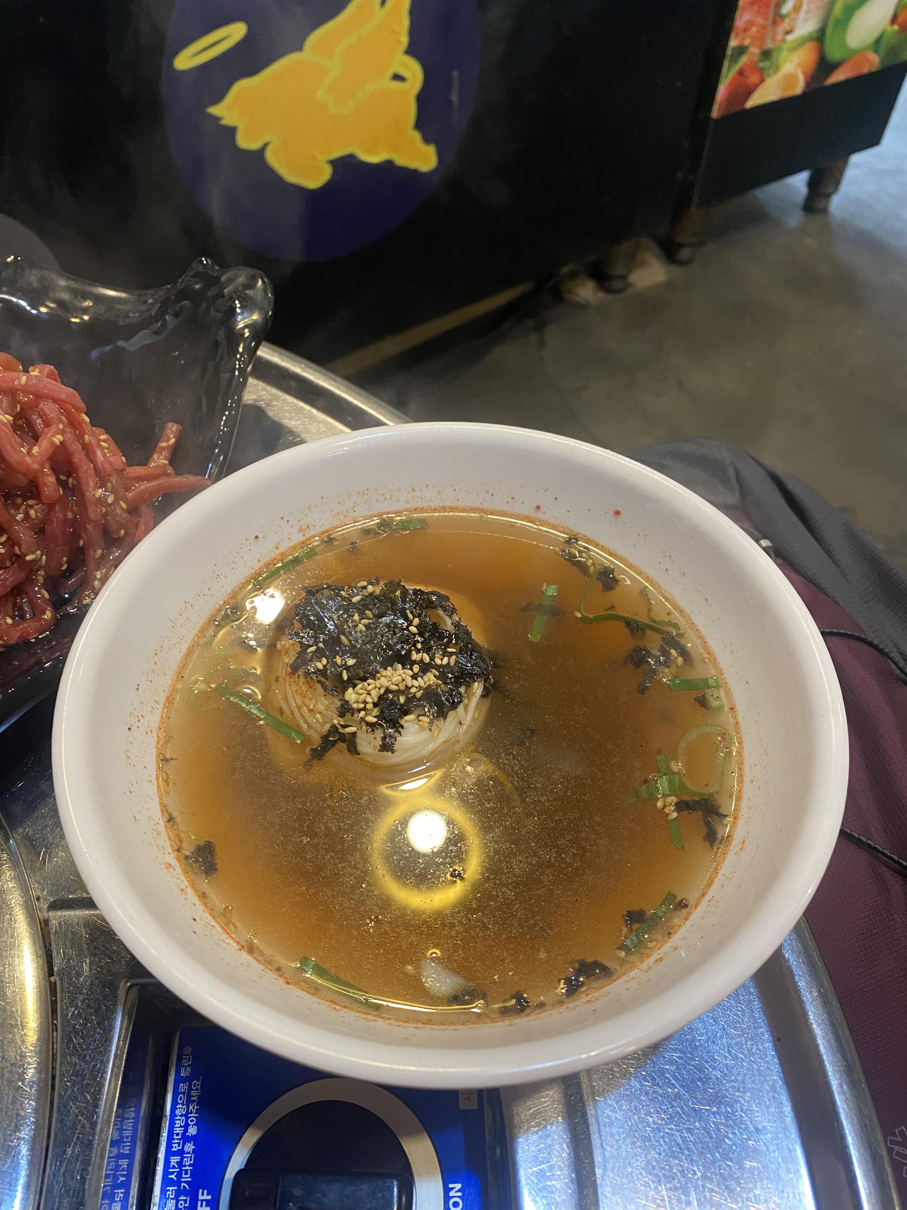 곱창 나오기 전 배고파 죽겠을 때 이 국물 먹고 허기를 달랬습니다.