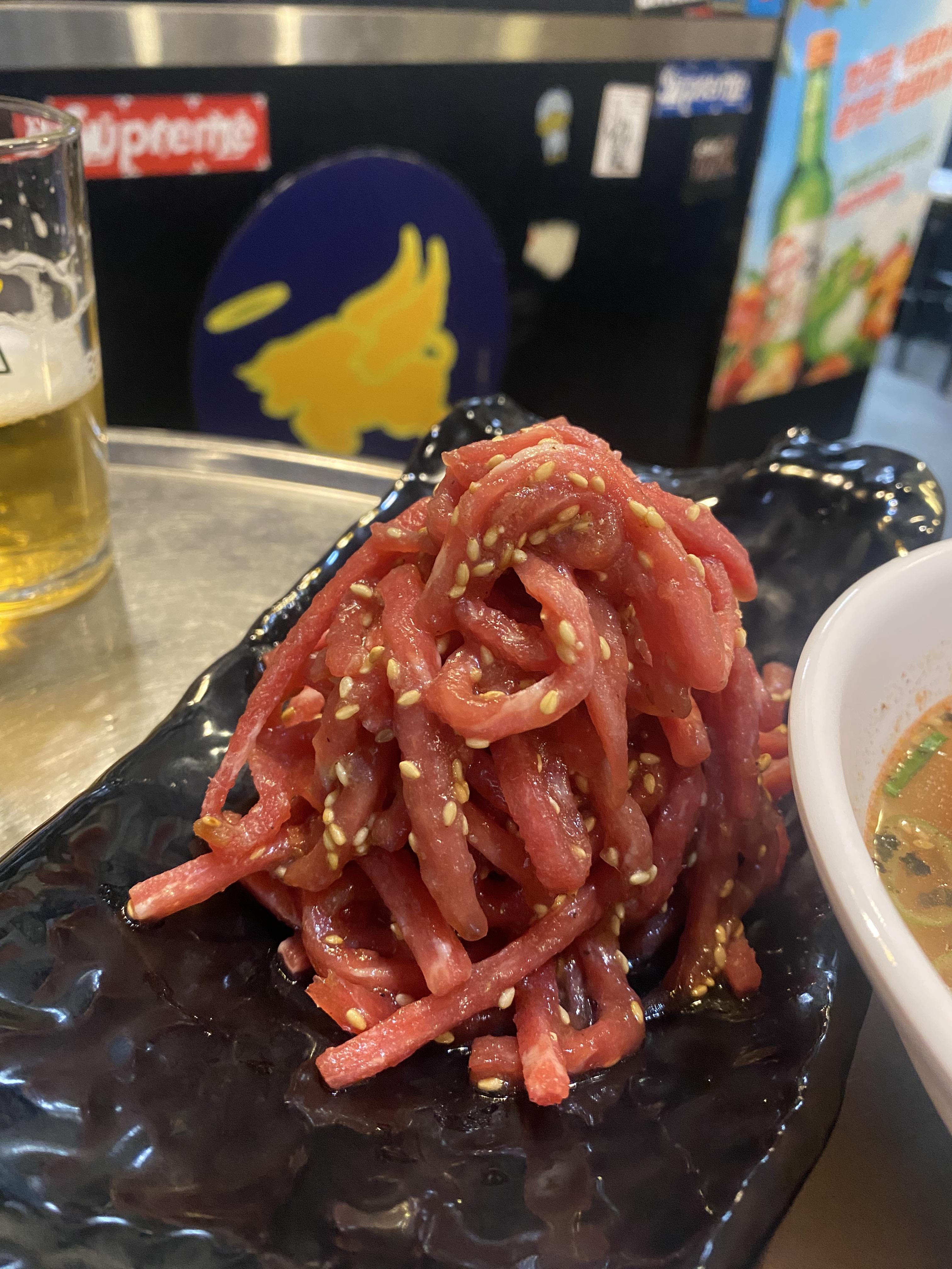 그래서인지 냉동육회였어요... 솔직한 리뷰이니까... 솔직히 쓰자면 결혼식장 냉동 육회를 좋아하시는 분이 시키시면 좋아할 것 같습니다.