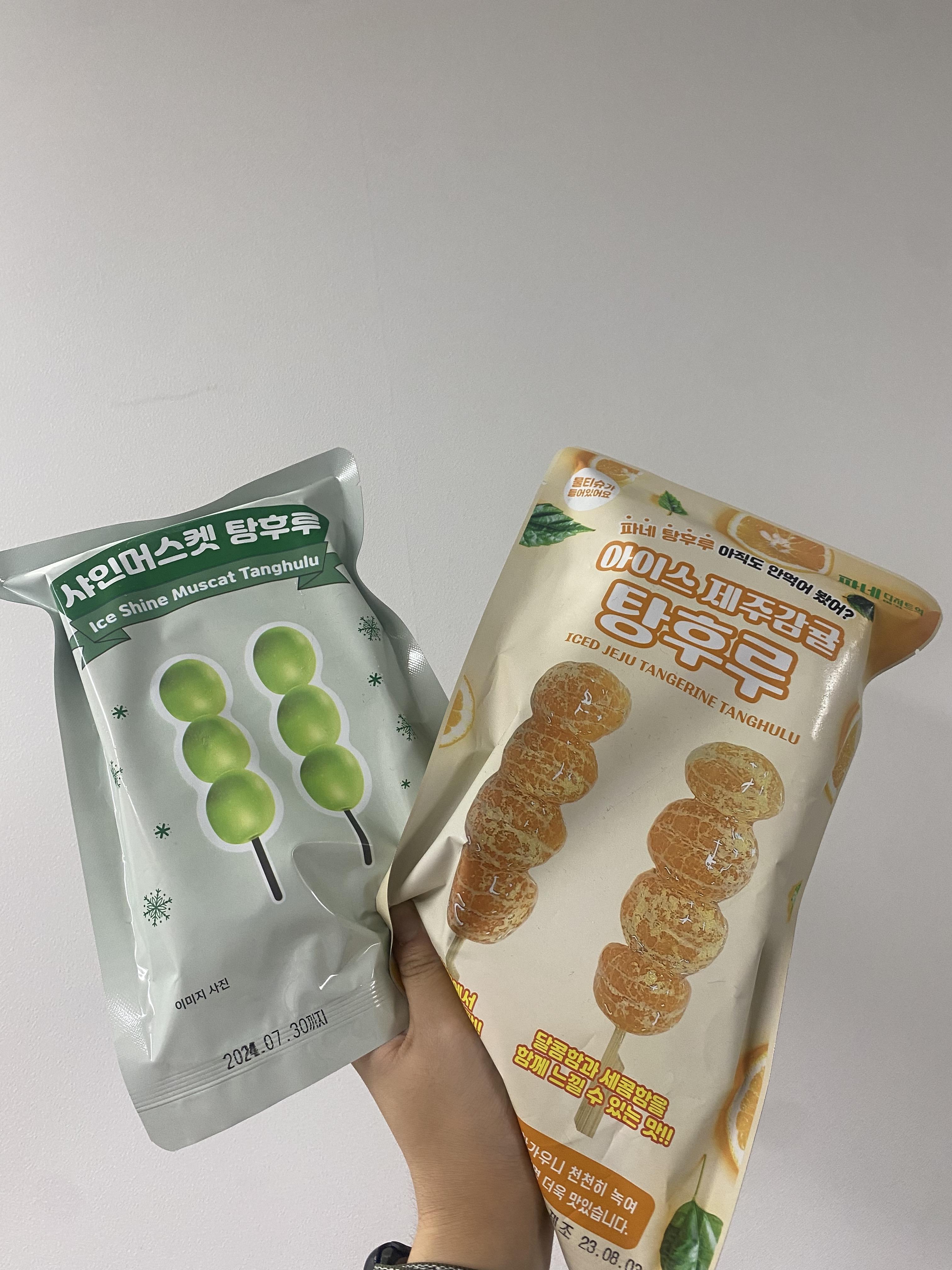 네... 아이스 제주감귤 탕후루와 샤인머스캣 탕후루를 픽했습니다