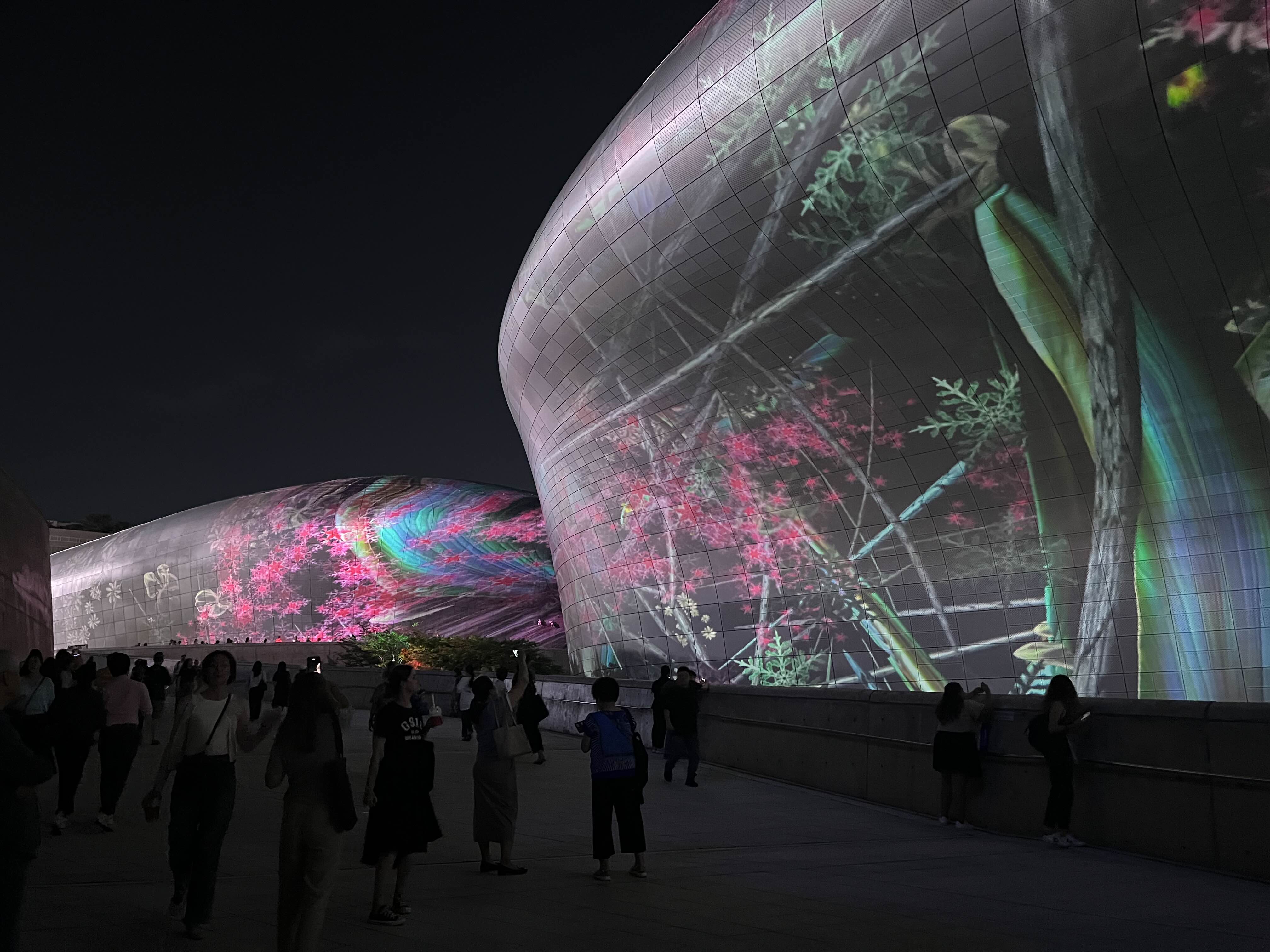 가을밤 디디피의 광활한 외벽을 수놓는 초대형 미디어 파사드를 통해 디지털 기술로 구현되는 새로운 자연에 대한 예술적 경험을 선사한다고 하네요
